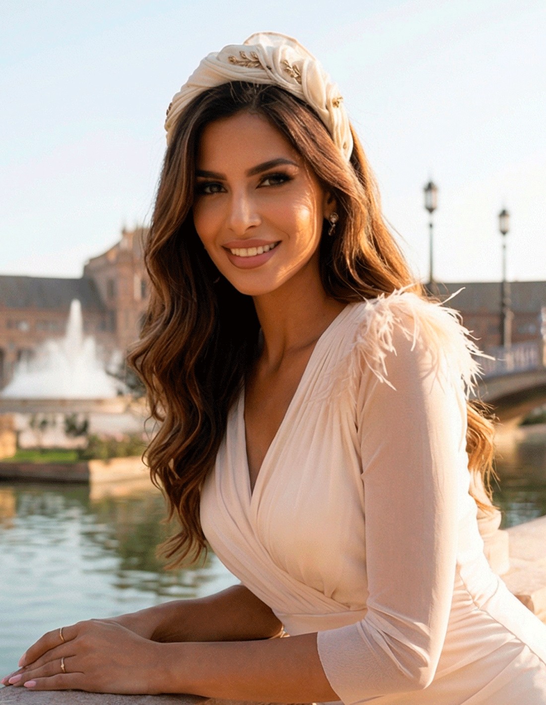 This beautiful headband is made with silk sinamay abaca and hand sewn with great care. It can be worn with or without a net, depending on your style, and is an ideal accessory for occasions such as weddings, christenings and all kinds of celebrations.
