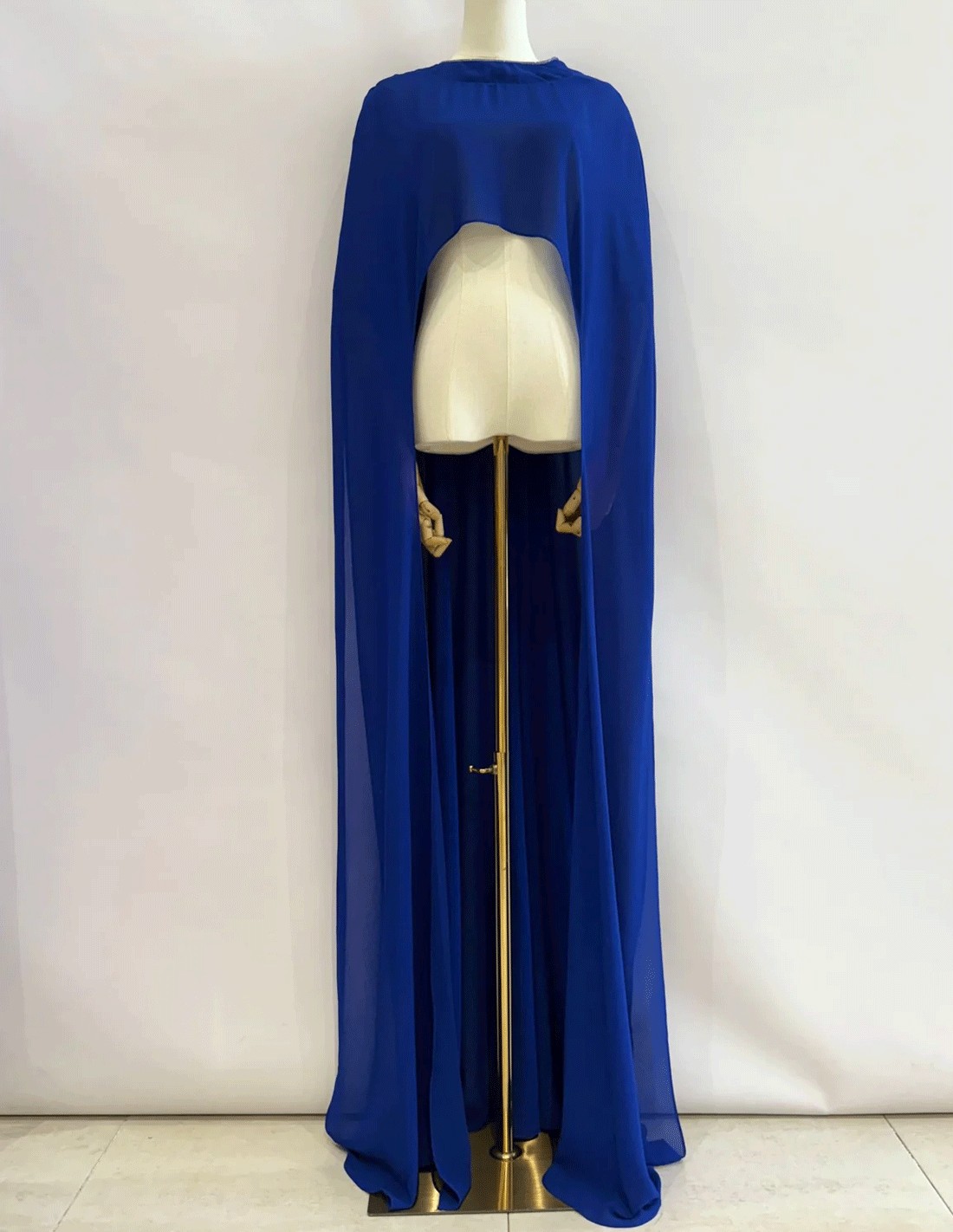 Asymmetrical multiposition chiffon wedding guest cape Maxi