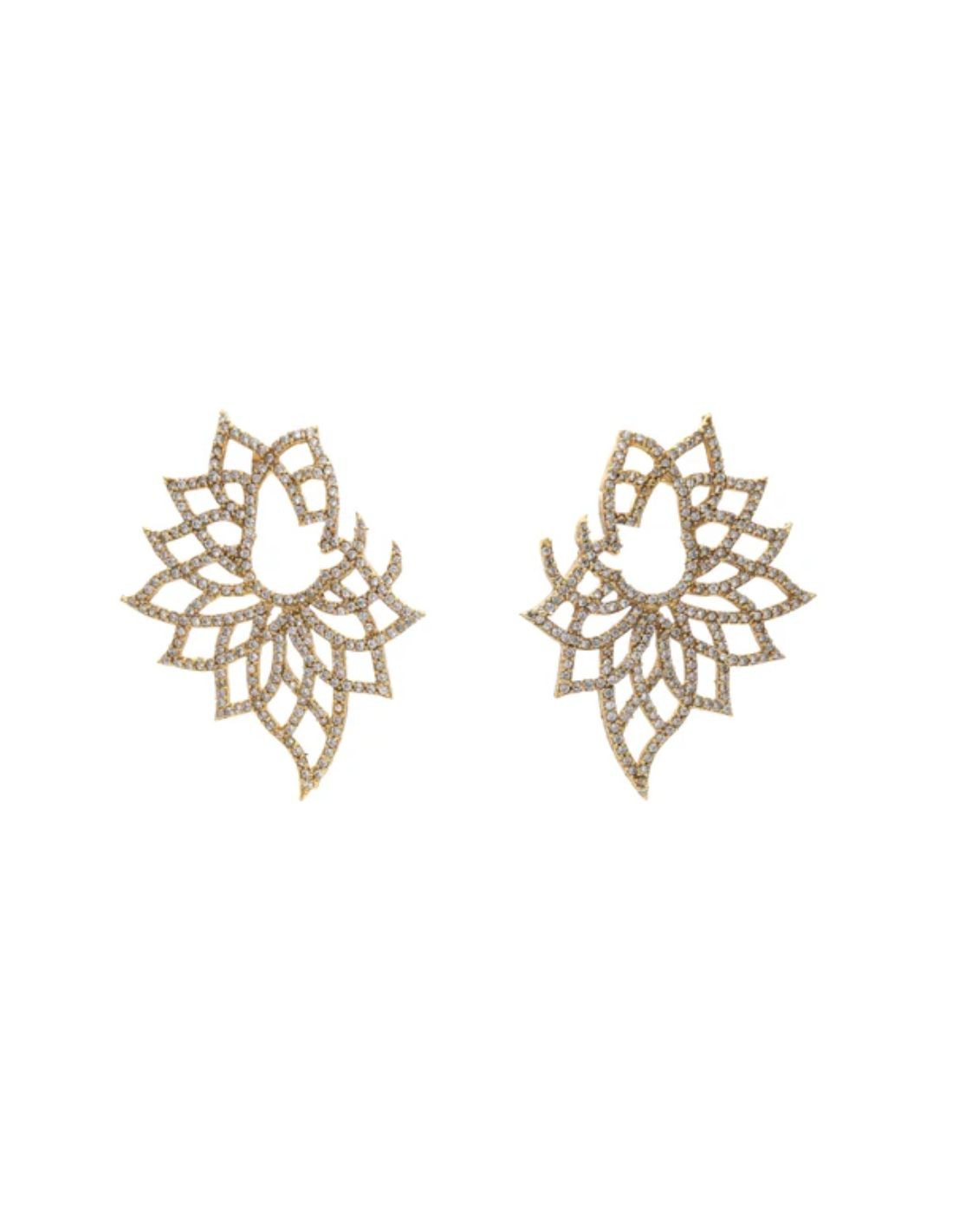 A delicate and radiant design, these flower-shaped earrings feature finely set zircons that add a subtle and elegant sparkle. Crafted in gold-plated brass, they offer a warm and sophisticated finish that enhances your feminine charm. Lightweight and versatile, they are perfect for complementing both an everyday look with a touch of light and a more refined outfit for special occasions.