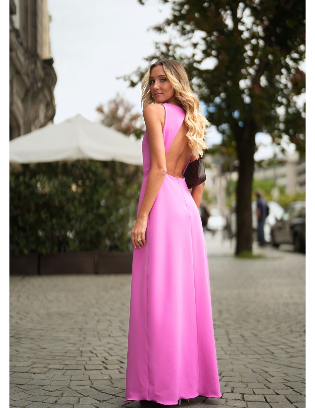 Pink long dress with open back