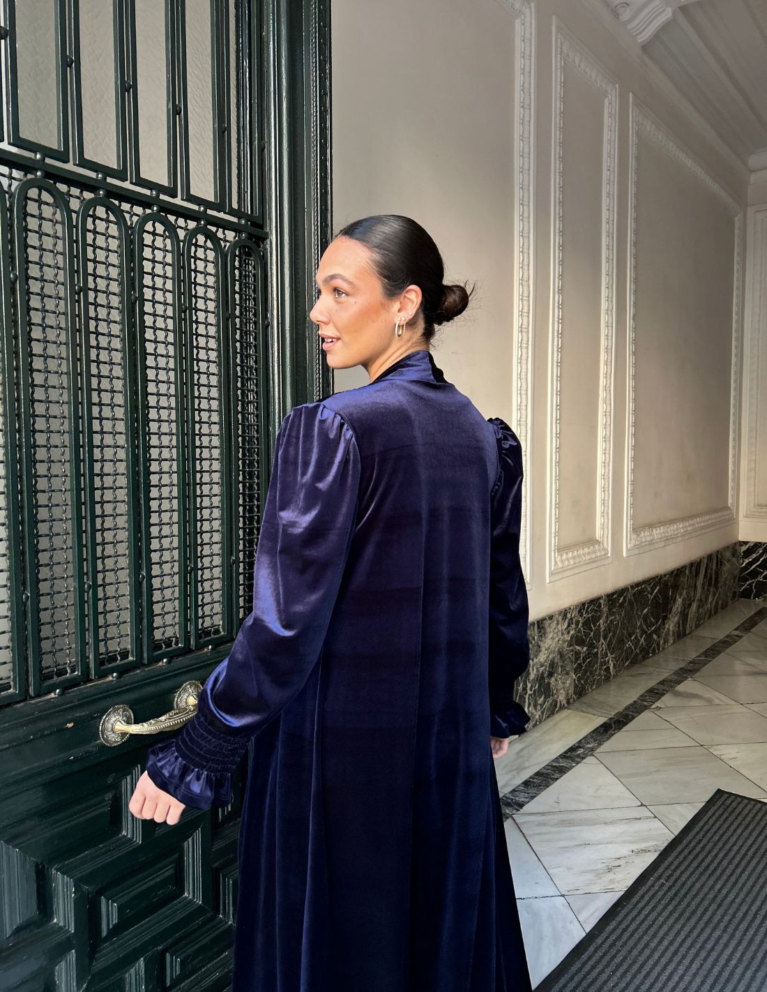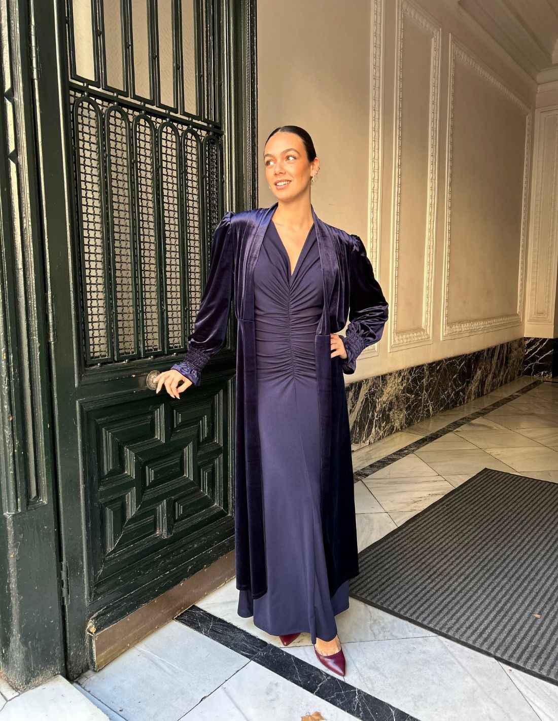 This velvet guest kimono is ideal to wear with printed or monochrome outfits and with midi cut dresses. It will become an essential accessory in your fall/winter events to go warm but without leaving the style aside.
