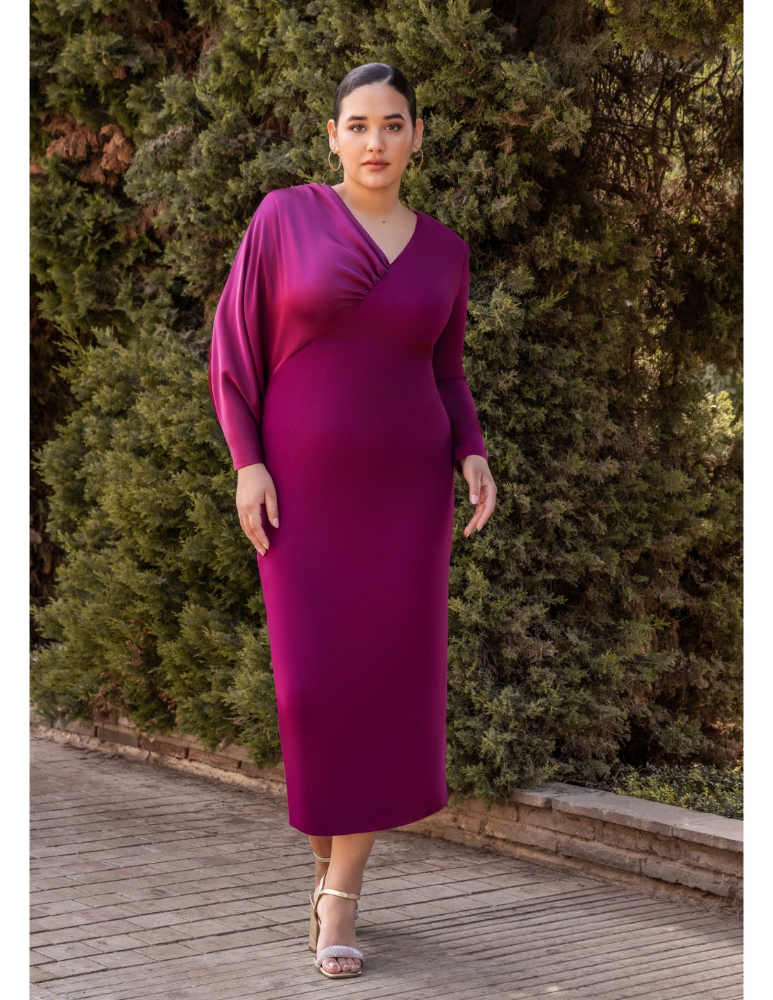 We have the perfect design for your events of the season. This midi dress for guest will make you shine at weddings, baptisms, even if you are a mother of communion. Made in crepe and with long satin sleeves in the same tone of the dress. A super special detail that makes it unique. Made with V-neckline, very flattering. Available in eggplant or russet tones.