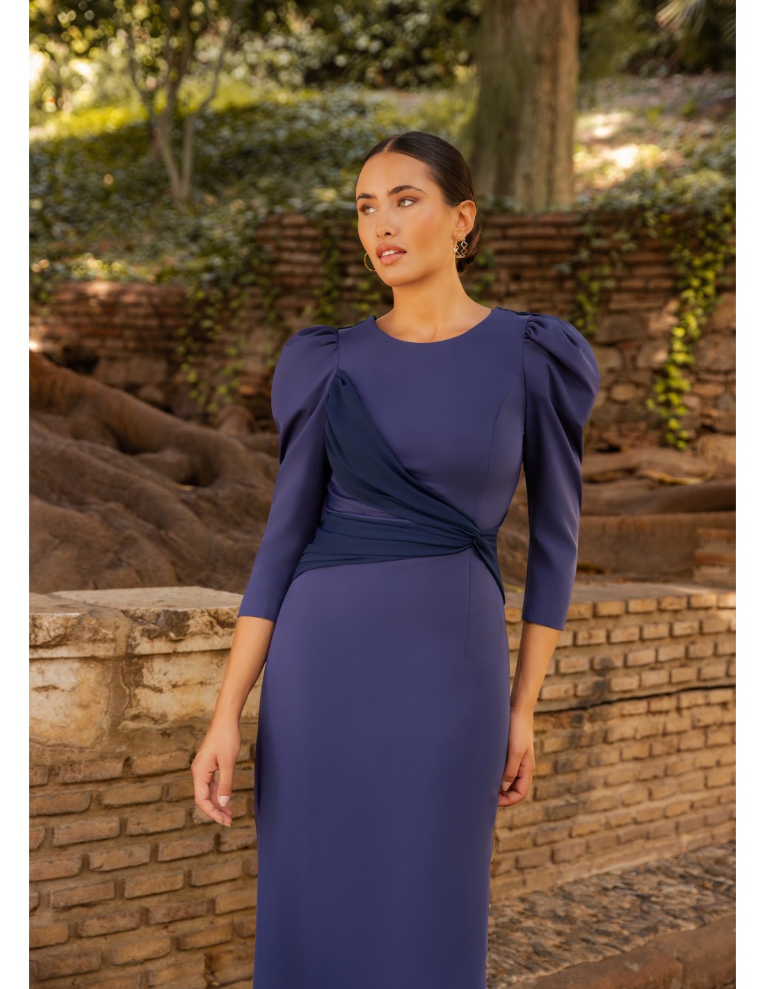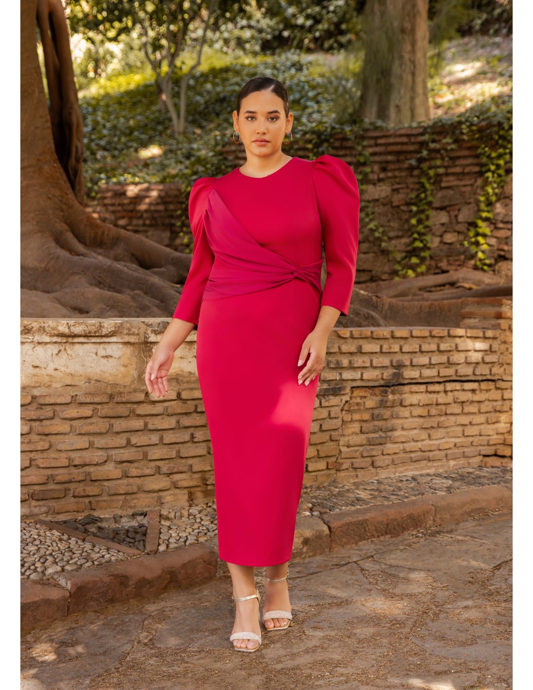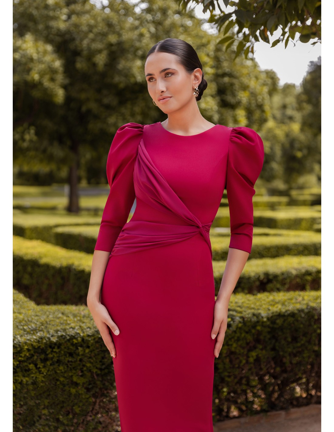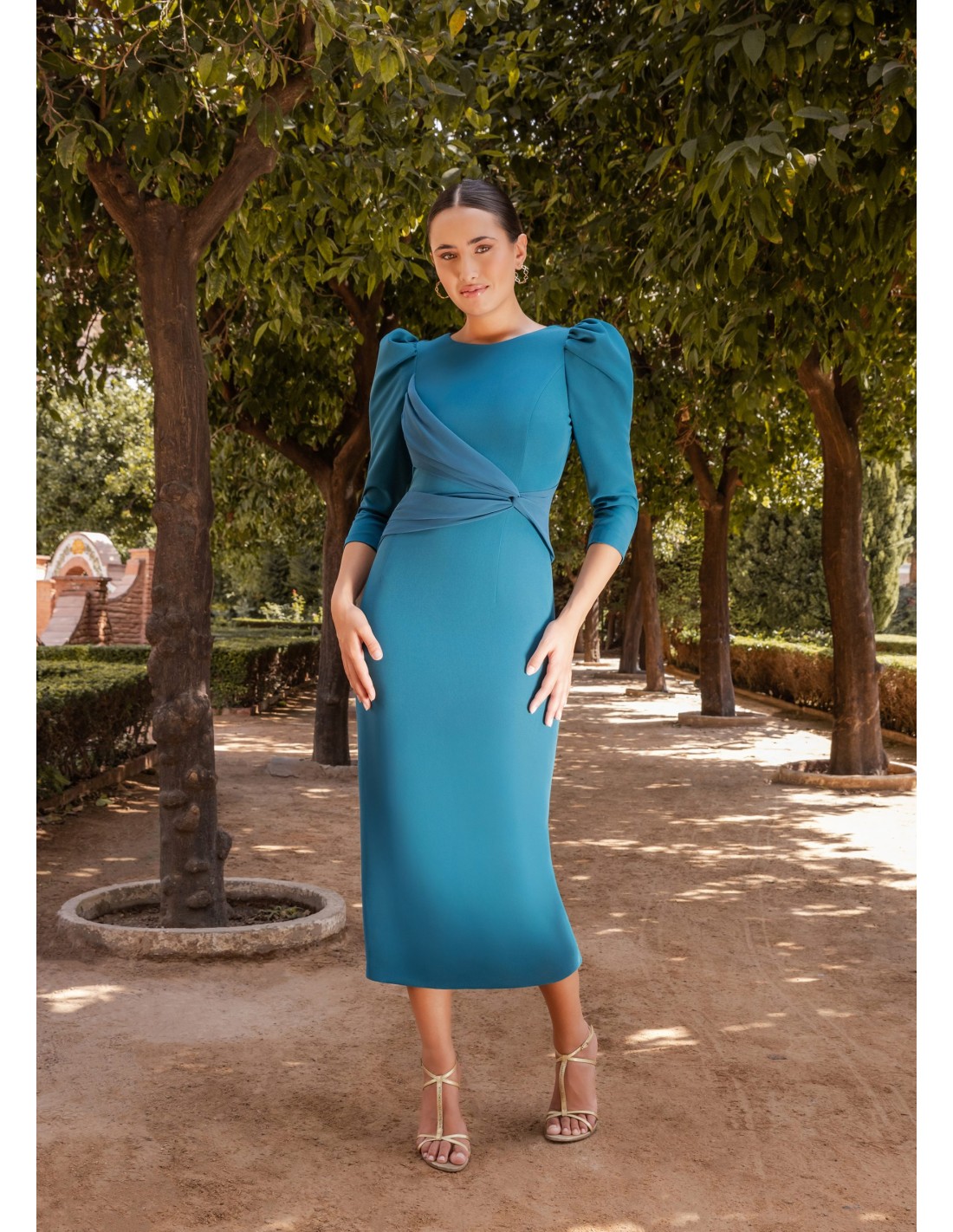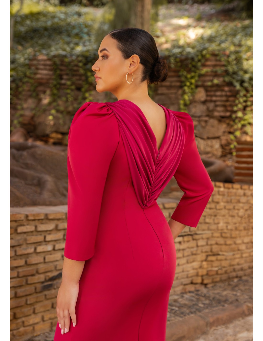 A special design that will make you a perfect guest in your fall/winter events. This midi dress is ideal for weddings, communion... you will shine! Made with semi-flared French sleeves and open back. It also incorporates jewel buttons and a chiffon detail on the front that brings that elegant and distinguished touch. Made in crepe. Choose your favorite color and dazzle in the events of the season.