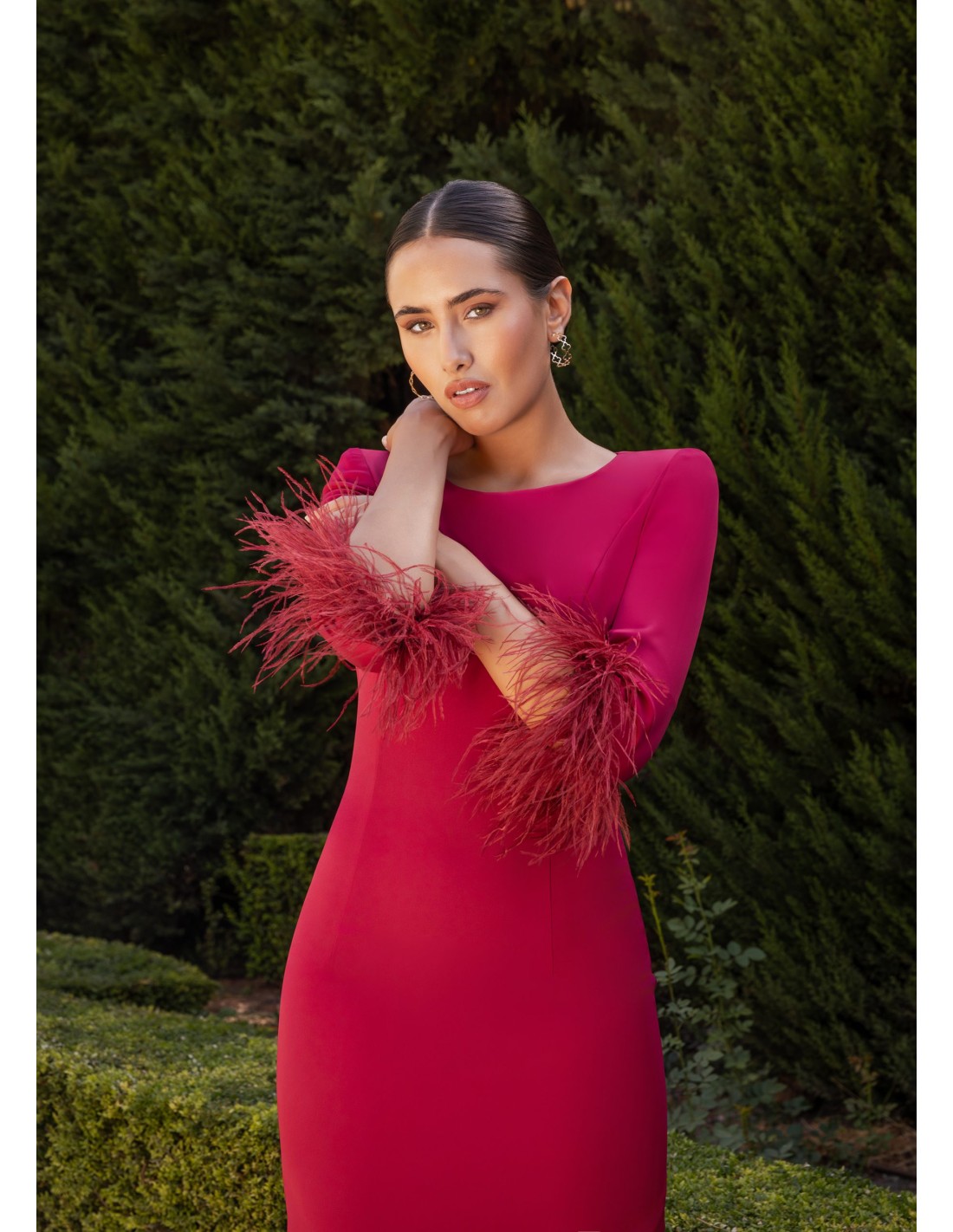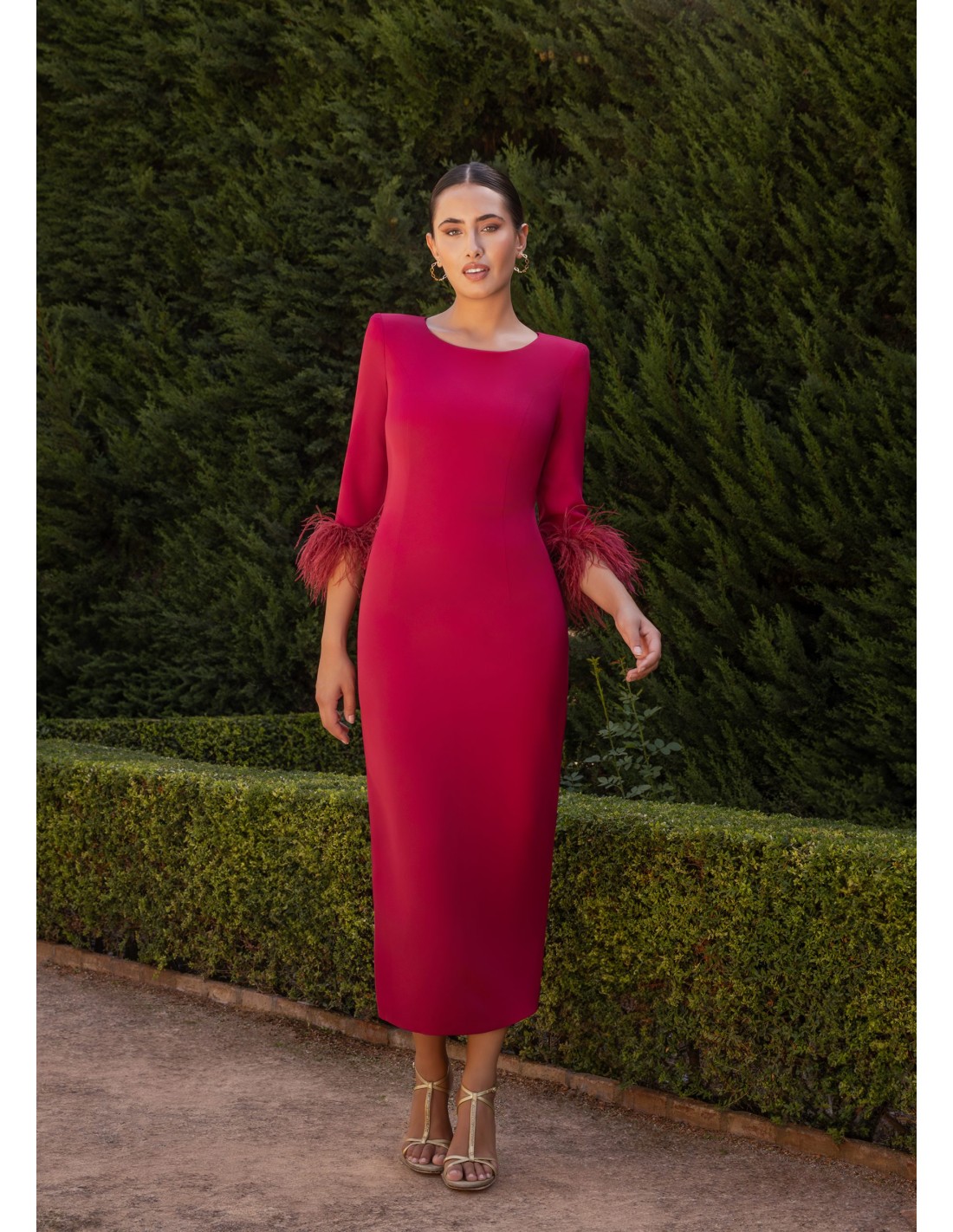 Midi dresses Long sleeved midi party dress with high neckline €223.00 Long sleeved midi party dress with high neckline for guests. If you have a daytime event this autumn winter season, whether weddings, communions or baptisms, this flattering dress will become your ally. It features long sleeves and a high neck to keep out the cold and an elegant draping on the criss-cross skirt. To highlight the figure, include this faux... Add to cart