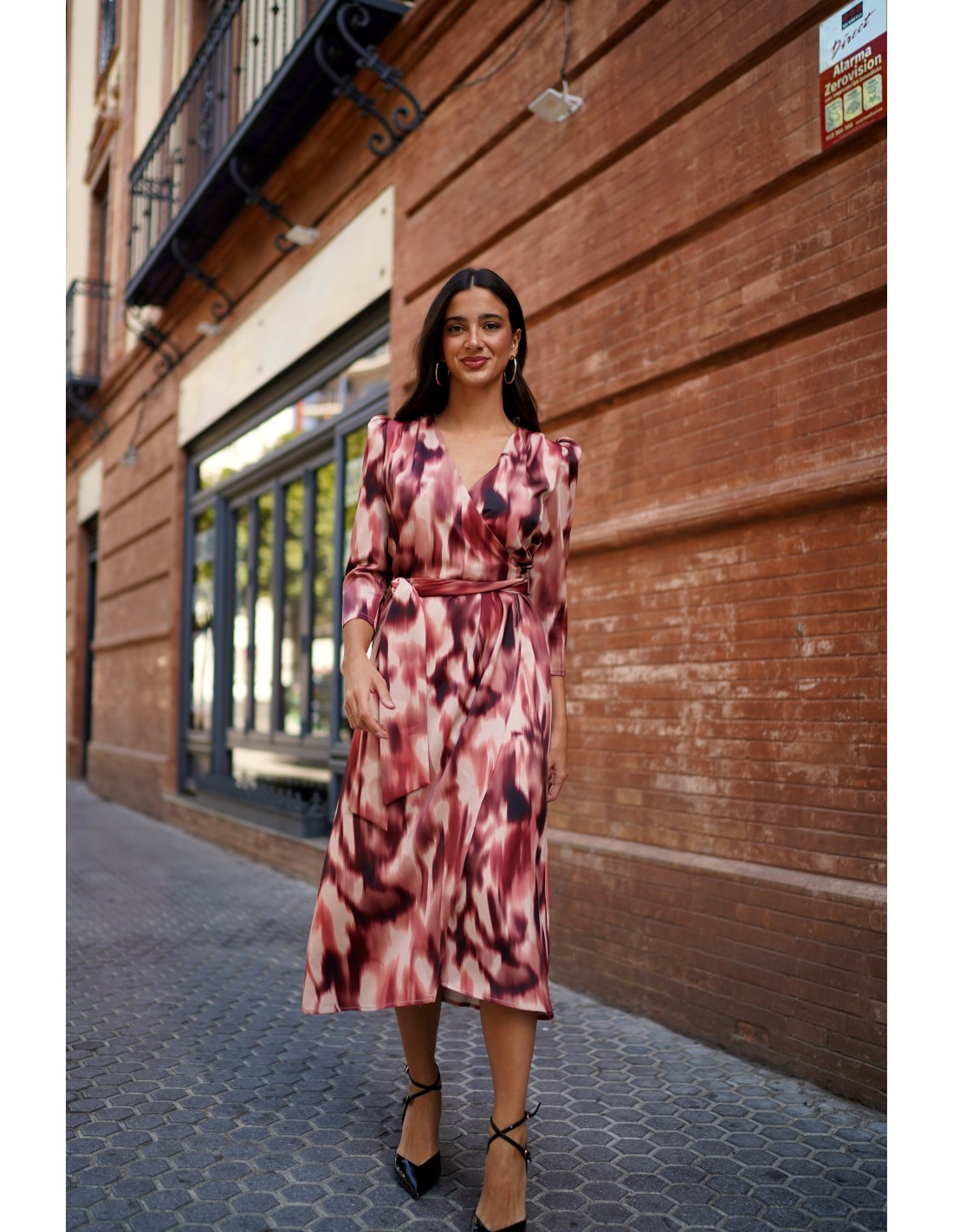 The tie belt allows you to adjust the garment to your liking, providing a delicate detail that highlights the waist and adds movement to the outfit. The midi cut offers a modern and elegant length, perfect for both casual events and more special gatherings.