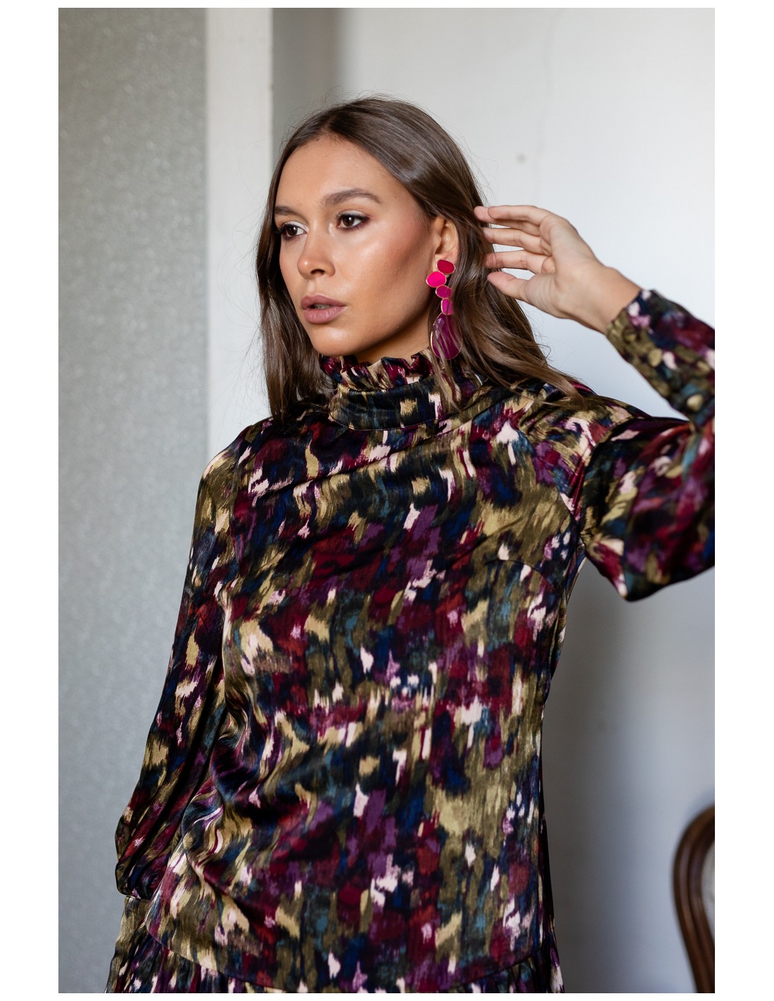 This printed midi dress stands out for its elegance and comfort, making it a must-have for the fall and winter season. Its low hip design provides a modern and stylish look, while the combination of trendy colors creates a spectacular visual effect. Ideal for events, meetings and special occasions, this dress enhances the figure and provides a striking, feminine and contemporary look.