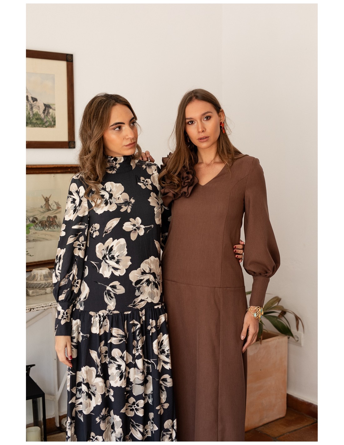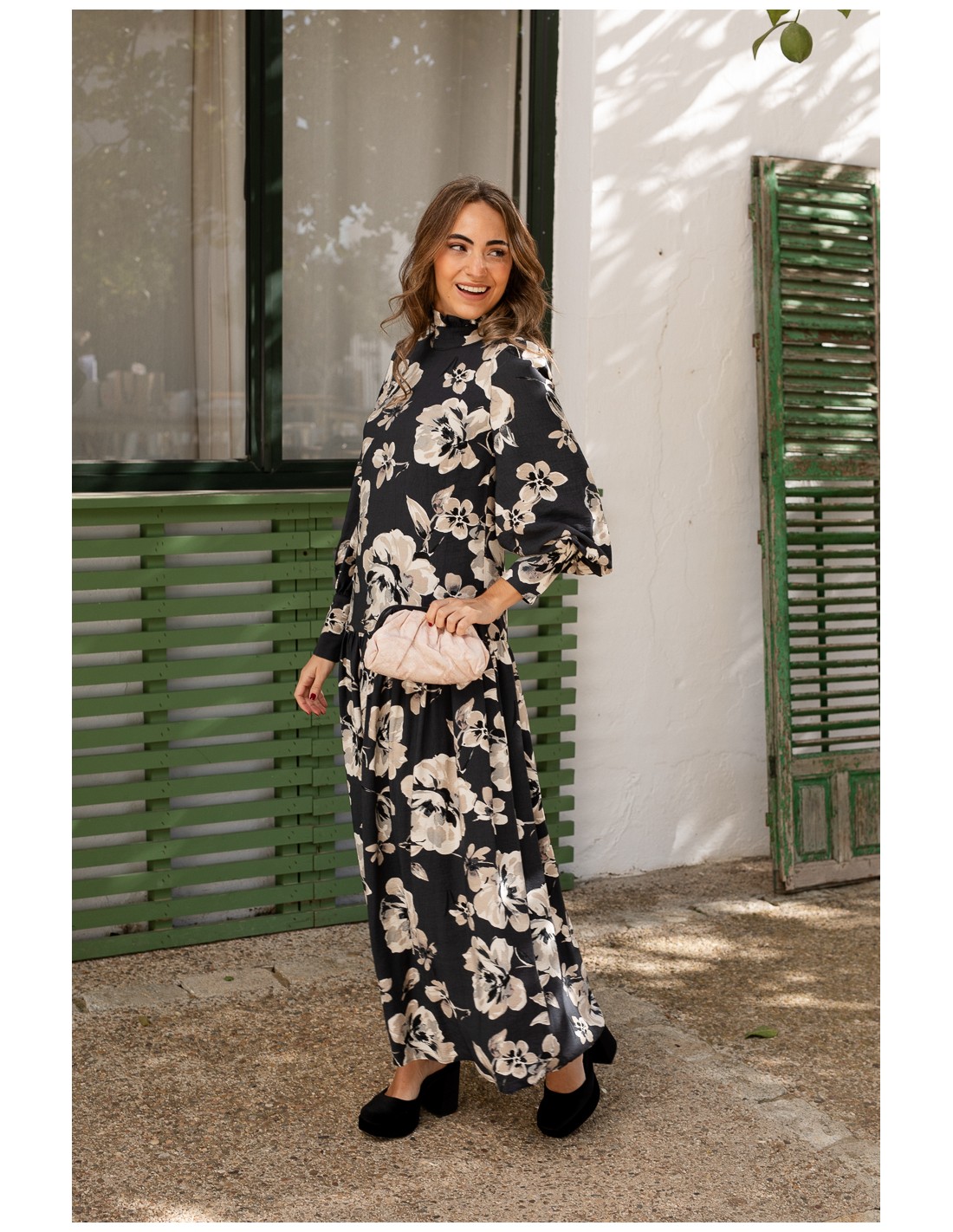 Floral print midi dress for fall and winter events