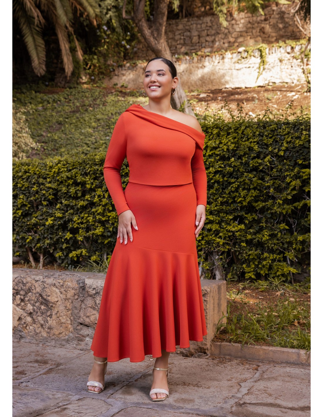 Skirts and trousers Two-tone high waisted midi party skirt €114.00 If you have an event this fall, combine this midi party skirt with its matching top, it will make you shine on your special occasions! An elegant garment, made in silk knit in maroon with pink chiffon bottom. Its high-waisted, elastic waist allows total comfort and perfect fit. You can wear it in evening events such as weddings, graduations, communion...... Add to cart