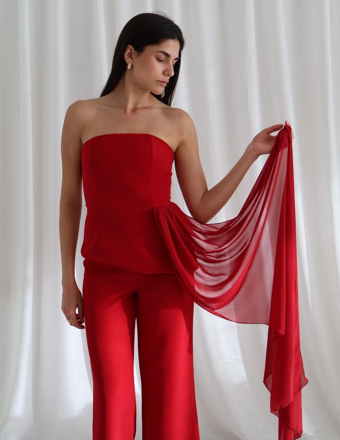 Set de dos piezas con top palabra de honor y pantalón de pinzas