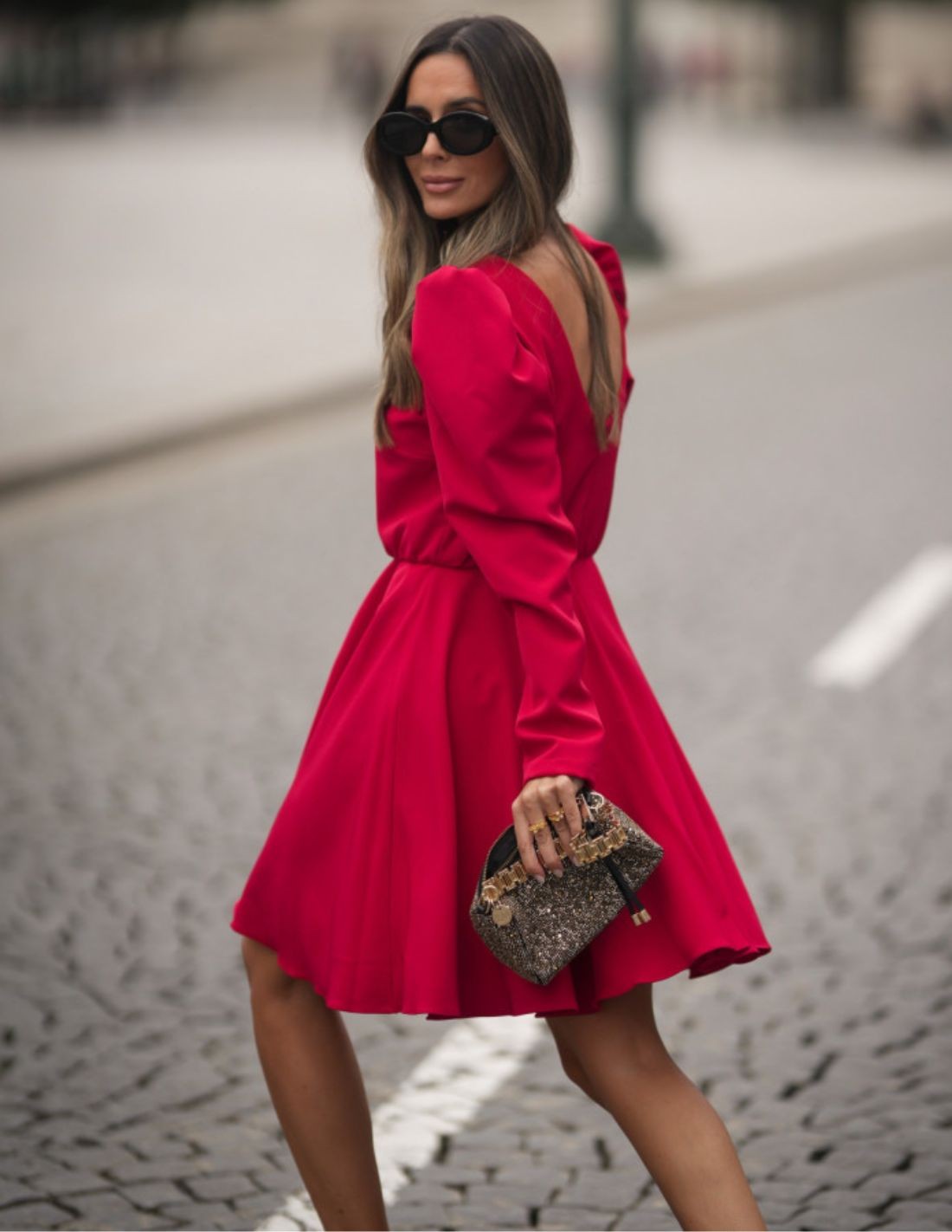 If you bet on short dresses and cheerful colors, this short red dress is a sure hit. With long sleeves, accentuated cut at the waist, round neckline and open back. Fully lined dress with invisible zipper in the back.