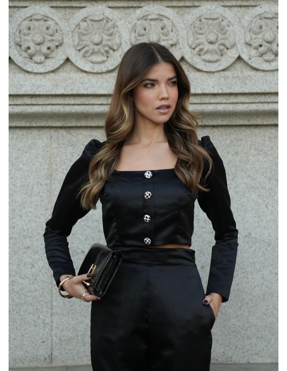 Discover the black high-waist pants that combine elegance and comfort in every occasion. Designed with practical side pockets and an invisible zipper on the side, it offers an impeccable and sophisticated fit. Its flattering cut slims the figure, while the soft fabric ensures all-day comfort. Ideal for formal or casual events, it can be combined with the top in the same color and material for a harmonious and modern ensemble.