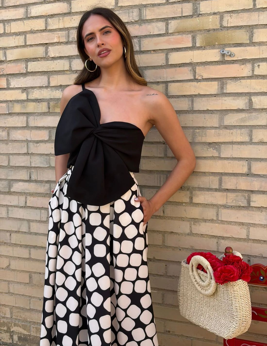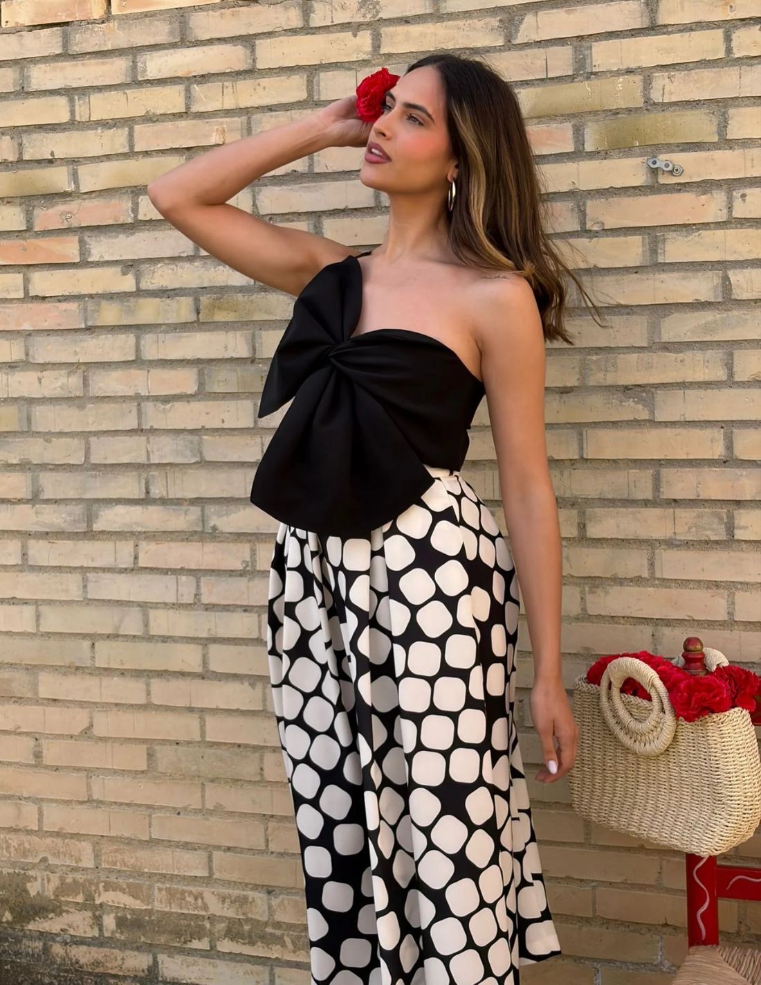 This midi skirt will be the star of this spring/summer season. Made in a light fabric and with a fluid fall, ideal for both special occasions but also for the most casual ones. Its timeless design combines the classic and the current and thanks to its polka dot print, it becomes an elegant garment. This skirt is comfortable and versatile to combine it with all kinds of tops as it allows you to include the combination of other colors and take risks or do it in more basic ways.