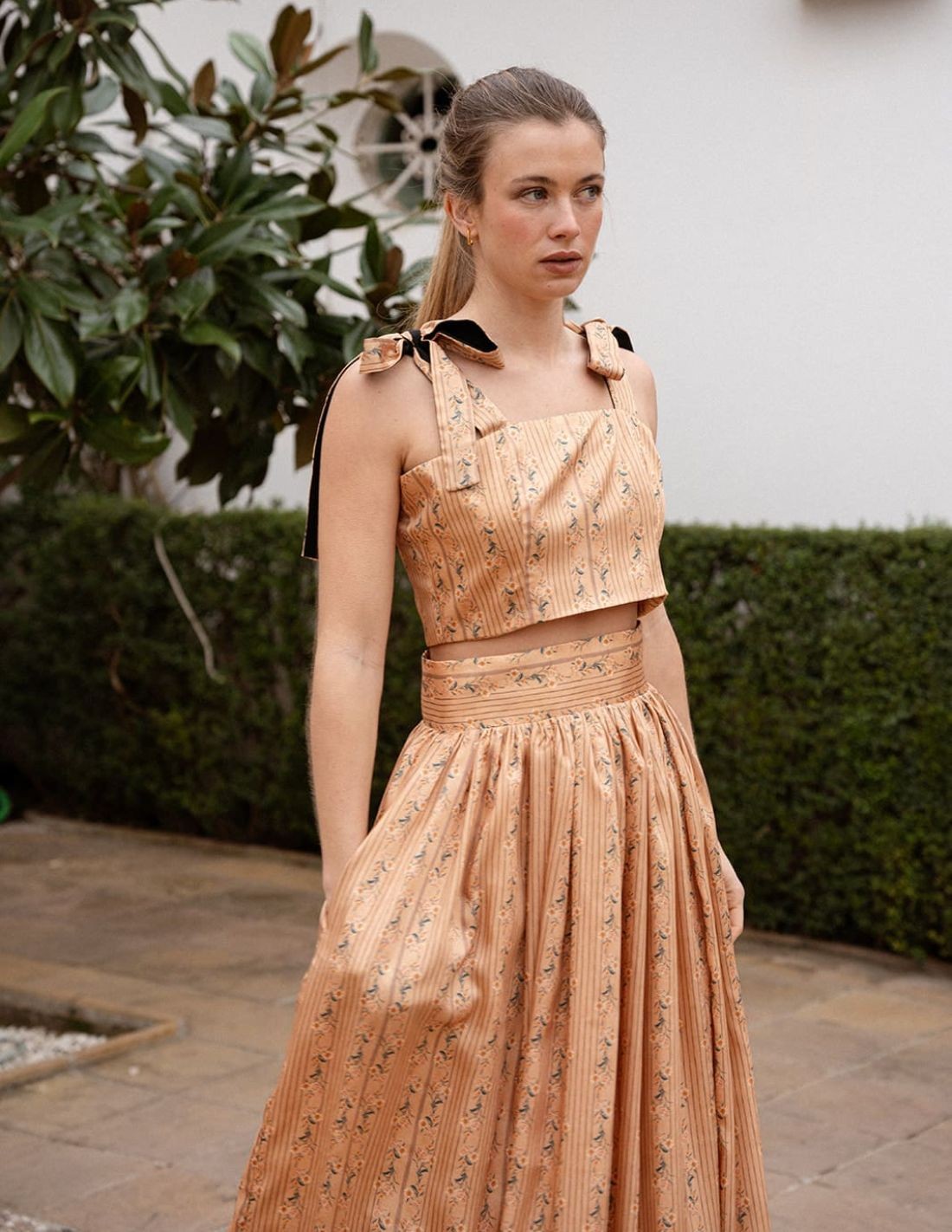 If you are looking for a special and unique top design, this strappy short top will save you different occasions. It incorporates lacing and mini floral and striped print. The top will become that garment that you will want to wear with everything, both with a more casual pants and with its matching skirt to go to a wedding, communion, graduation... you will fall in love! Ideal for this spring/summer season.