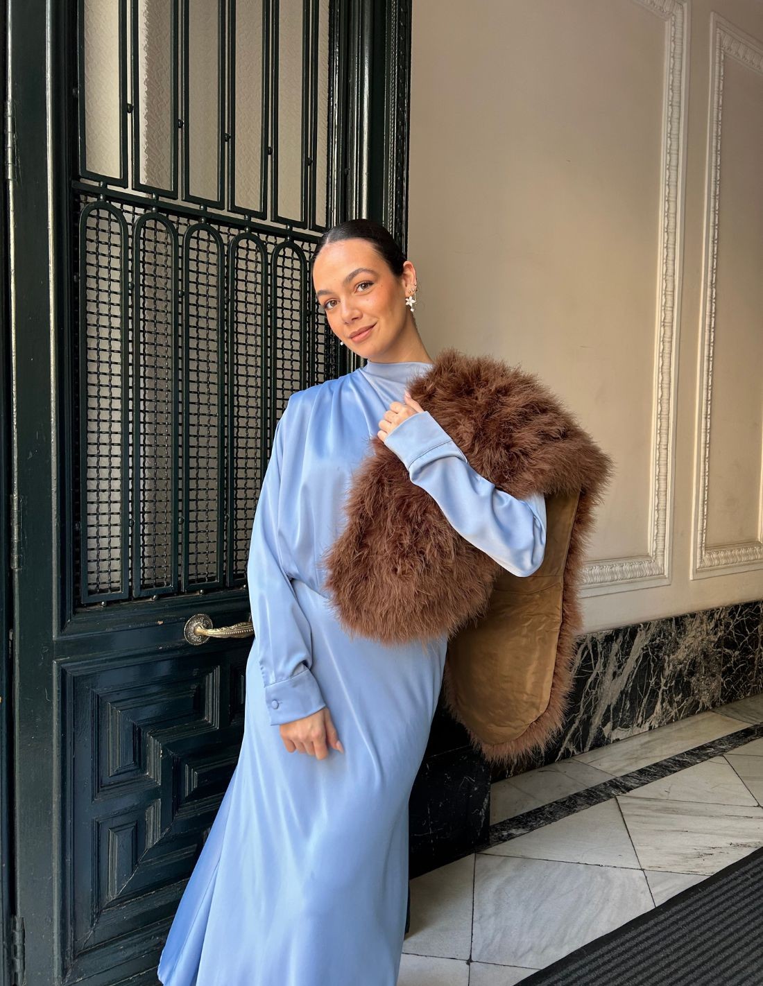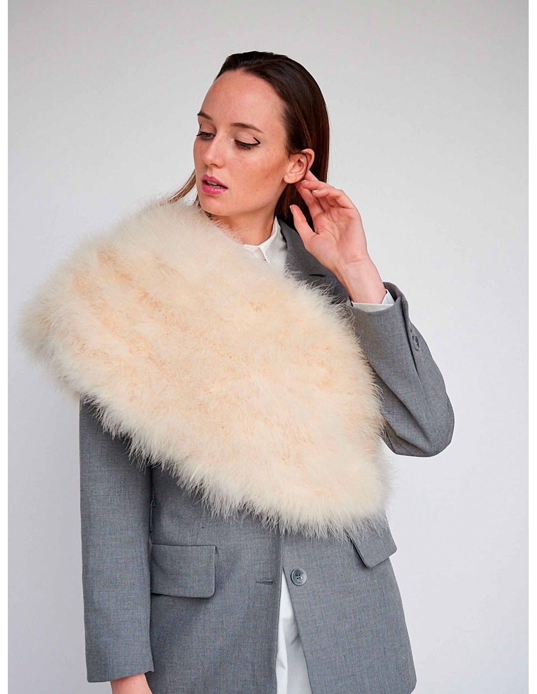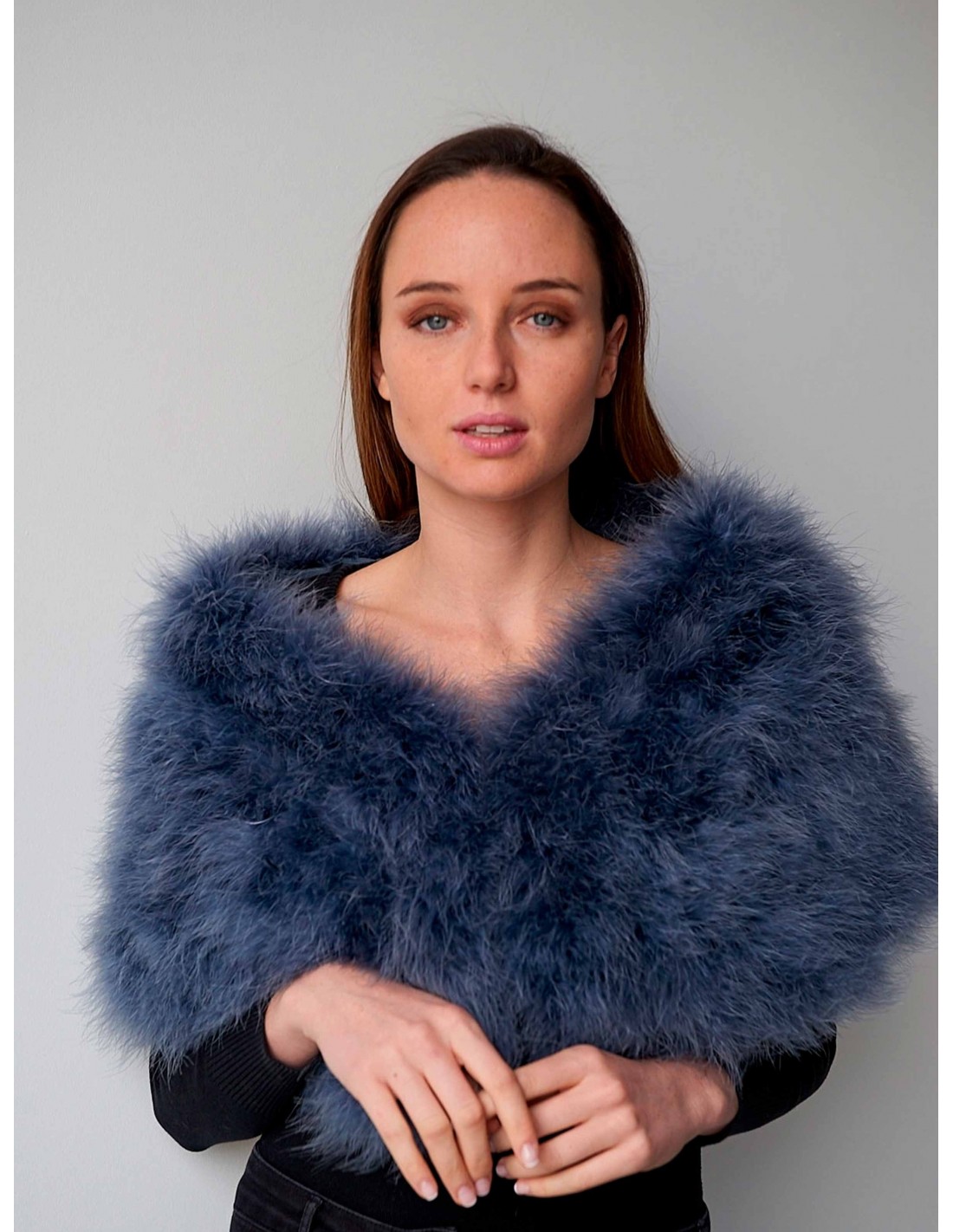 Beautiful Wrap made of natural ostrich plumage in several colors. Available in: ink blue, beige and fuchsia. A perfect accessory to wear on special occasions such as weddings, baptisms and communions.