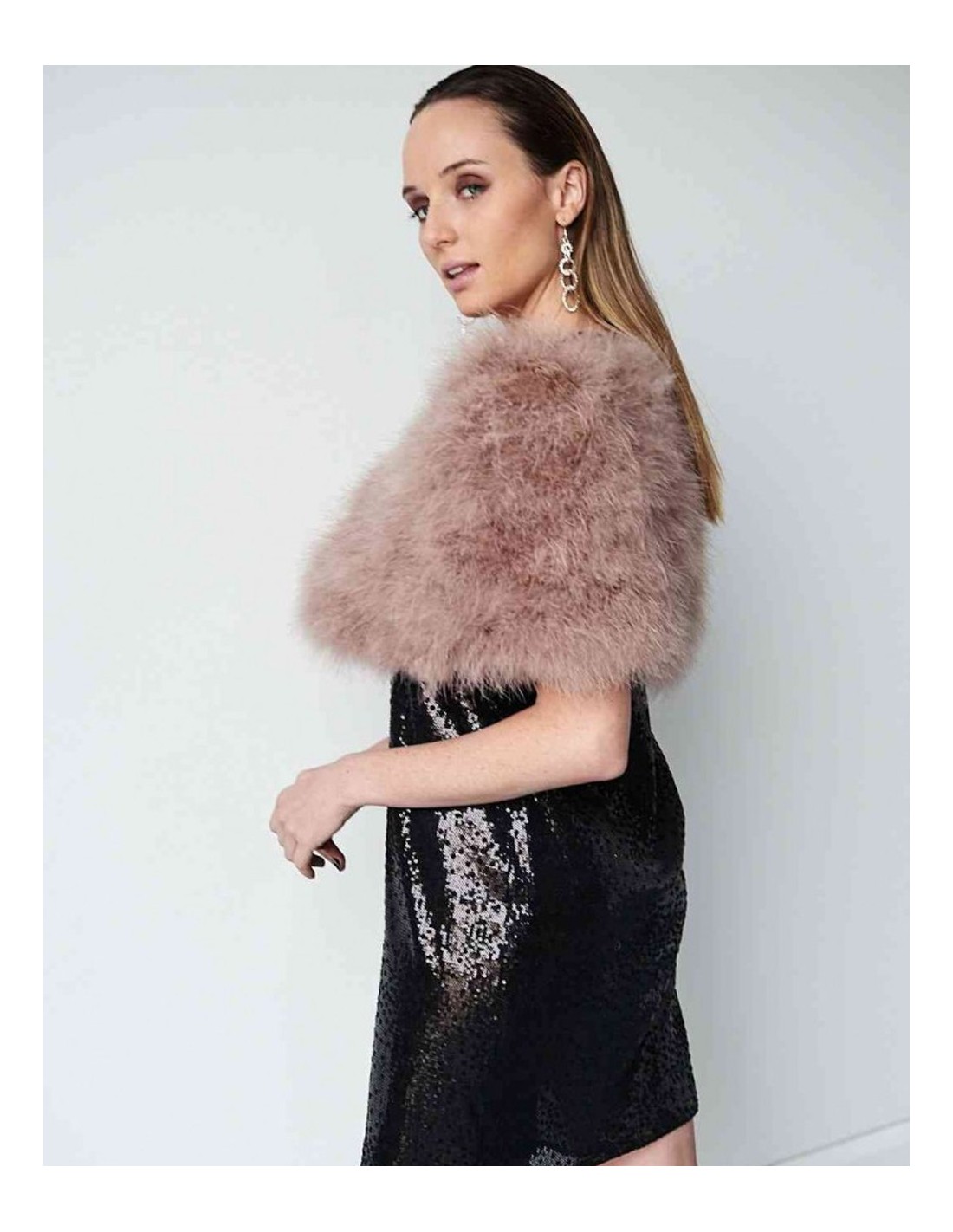 how to combine a party stole with ostrich feathers at a wedding? An ostrich feather party stole is the perfect accessory to elevate any guest look. Its elegant texture and sophisticated design make it a perfect match for long evening dresses, guest jumpsuits or even two-piece ensembles. The ideal is to choose a color that contrasts with your dress to bring light, or one in a similar tone for a harmonious finish. In addition, you can wear it loose over the shoulders for a classic style, or fasten it with a brooch for a more glamorous and modern look.