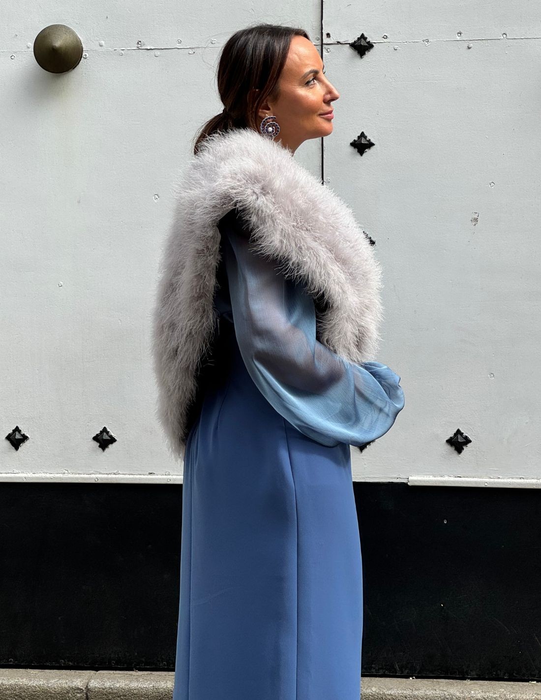 This gray ostrich feather wrap for wedding guests is the ideal accessory for any autumn or winter guest who wants to give her look an elegant and differential touch.
