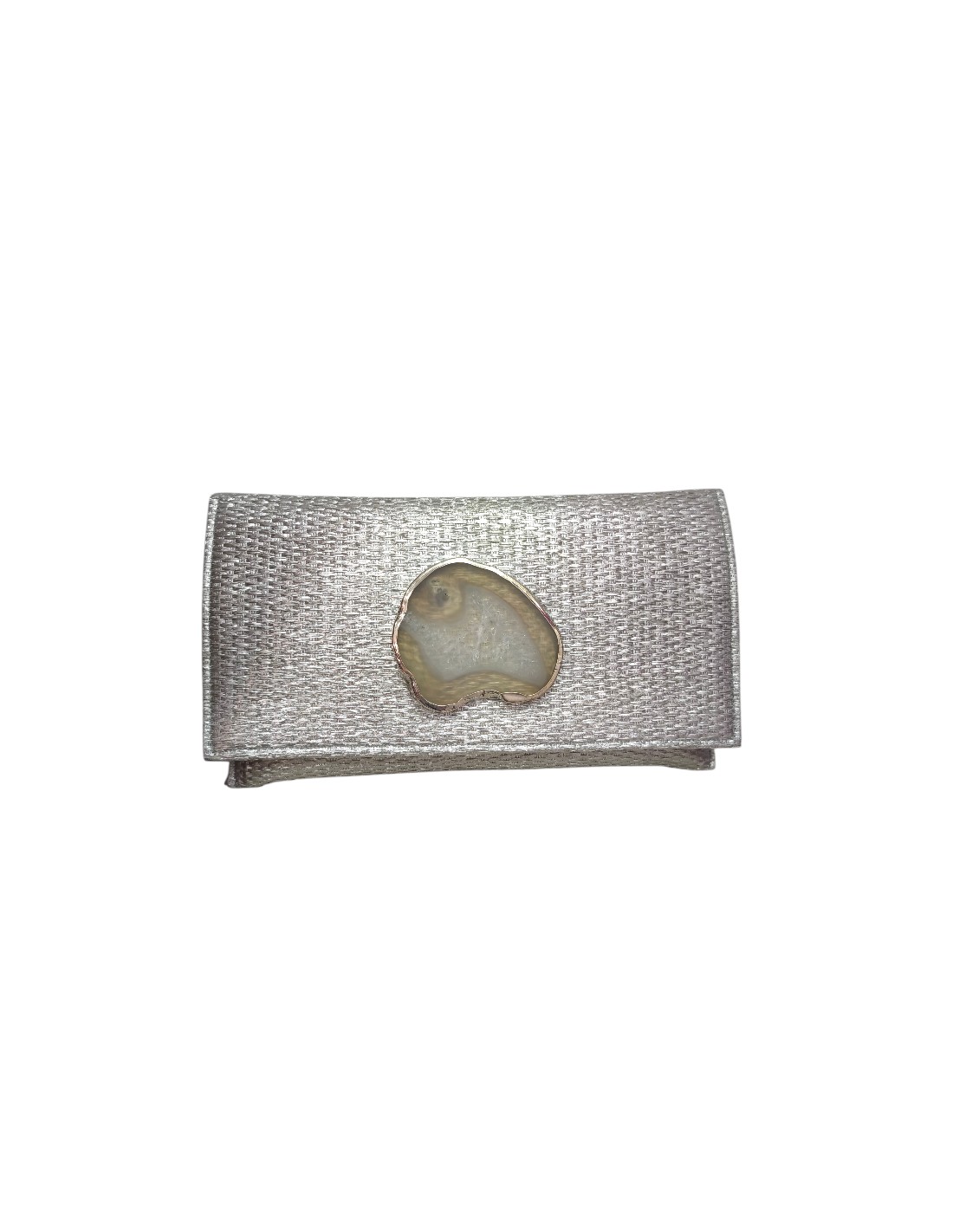 Esta cartera se convertirá en un básico para elevar tus looks tanto elegantes como más casuales. Realizada en yute color gris, ideal para combinar con todo tipo de prendas. Incorpora un detalle de broche de piedra natural que lo hace único y sofisticado. Cierre con broche y cadena dorada en el interior. Sin duda, el accesorio que no querrás quitarte, cómodo y versátil para cualquier temporada y tipo de invitada.