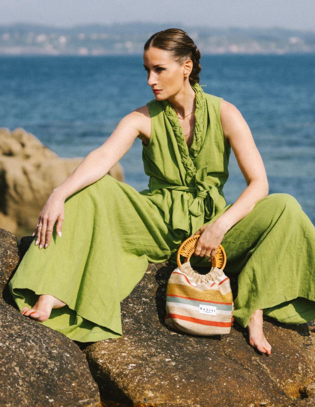 Ligero y versátil, incorpora cierre fruncido y un detalle de borlas decorativas que realzan su estilo boho. Ideal para completar looks de verano o dar un toque desenfadado y elegante a cualquier conjunto.