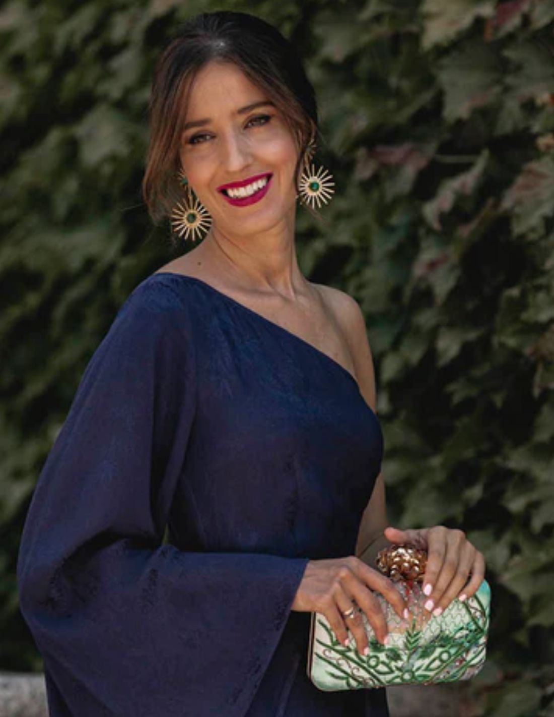 Bolso de invitada en tonos verdes con tela estampada y bordado