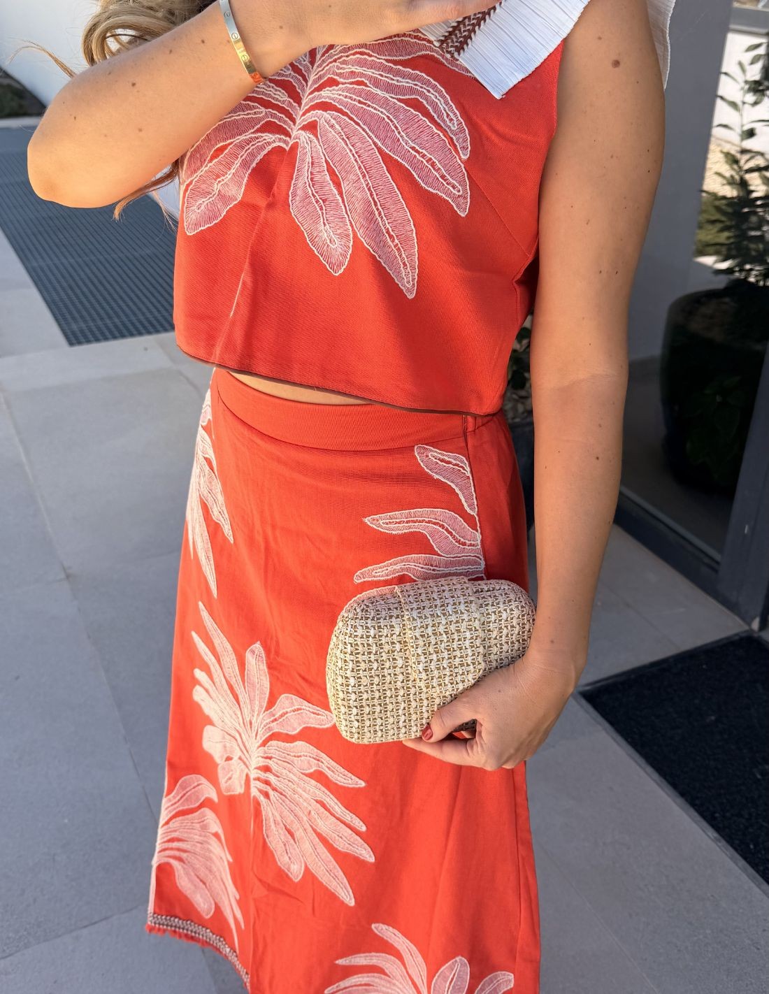 Si buscas el complemento perfecto, este bolso para invitada te elevará cualquier look, tanto los más elegantes como los más casuales. Con efecto rafia y cierre en el mismo material. Su capacidad te permitirá llevar lo esencial. Un accesorio cómodo y totalmente en tendencia que no querrás quitarte. En color beige, fácil de combinar, versátil y sencillo. Incorpora cadena para su total comodidad.
