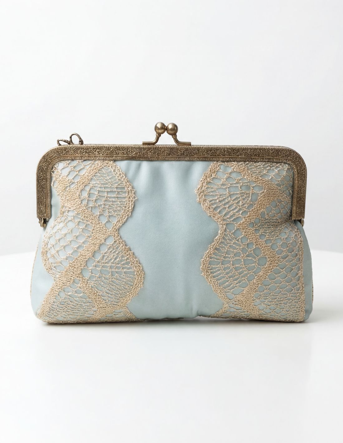 Bolso azul cielo con encaje de bolillos artesanal para invitada