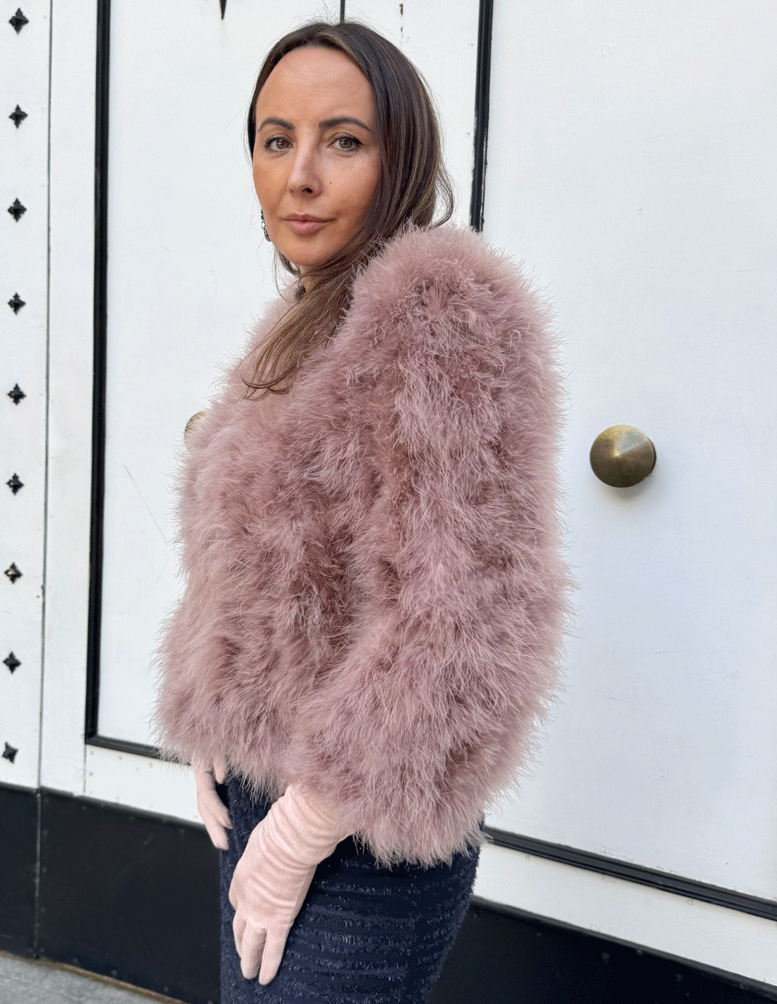 Chaqueta de pluma de avestruz en color rosa maquillaje