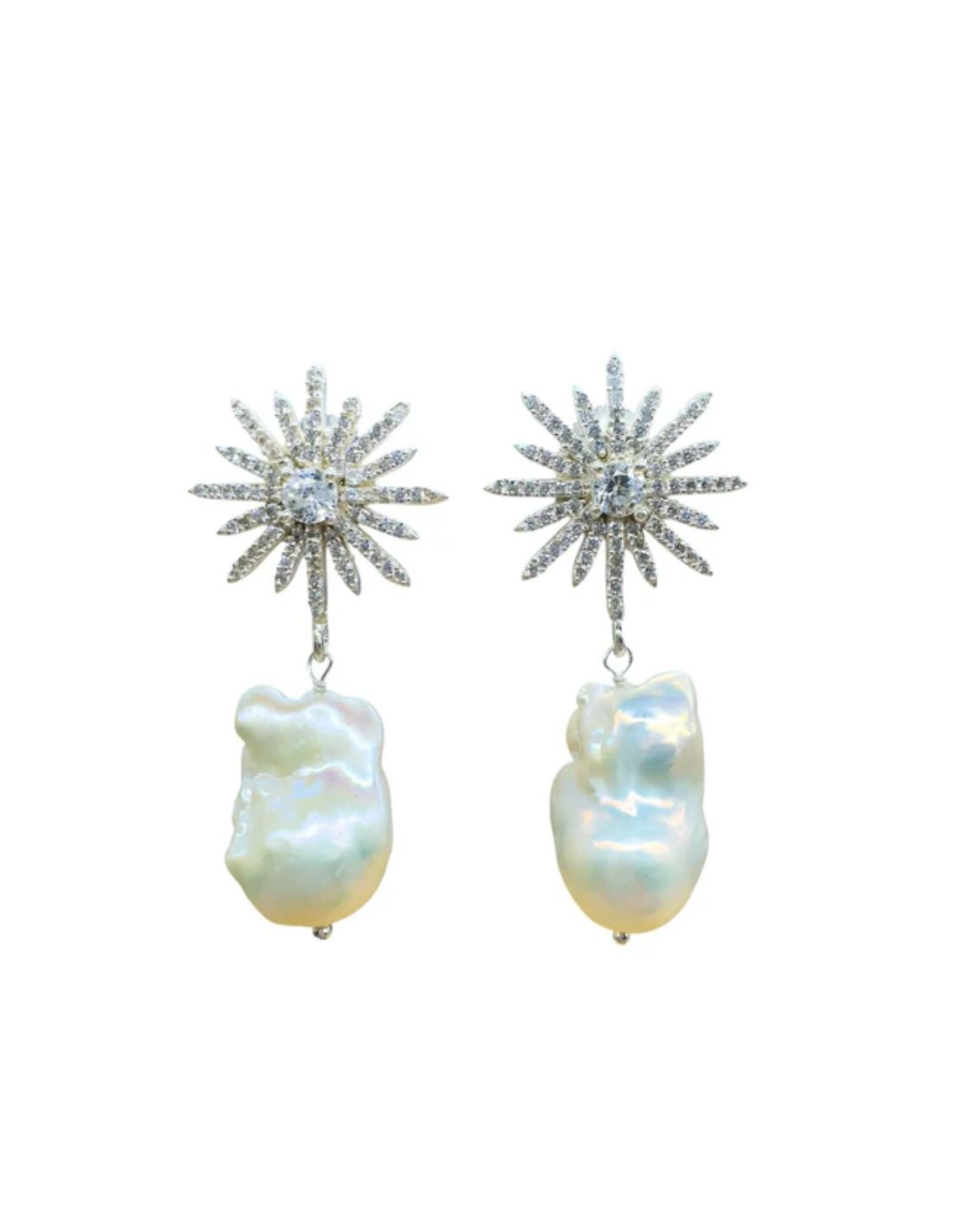 Unos pendientes diseñados para aquellas novias o invitadas que buscan la sutileza y la elegancia en un complemento para elevar un look. Con un diseño formado por una pieza superior en formar de estrella, engastada en brillantes de circonitas, de la que cuelga una perla barroca de silueta irregular. Los pendientes perfectos para completar un look, sobre todo para una ocasión tan especial como una boda o incluso un bautizo.