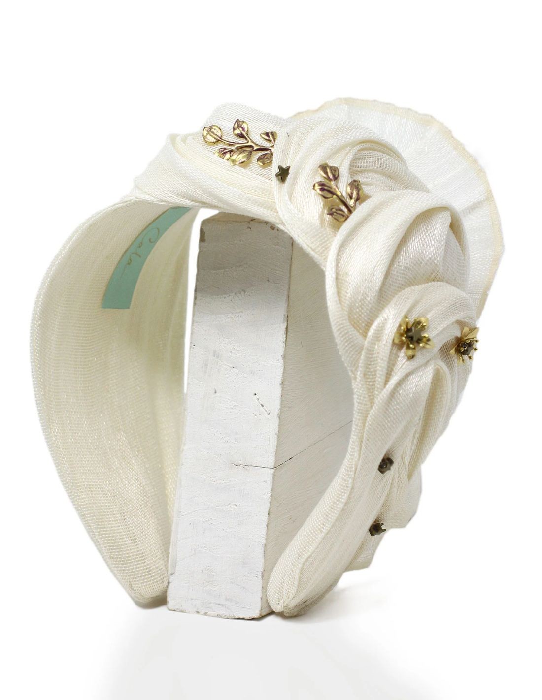 Diadema efecto arrugado confeccionada en sinamay de seda