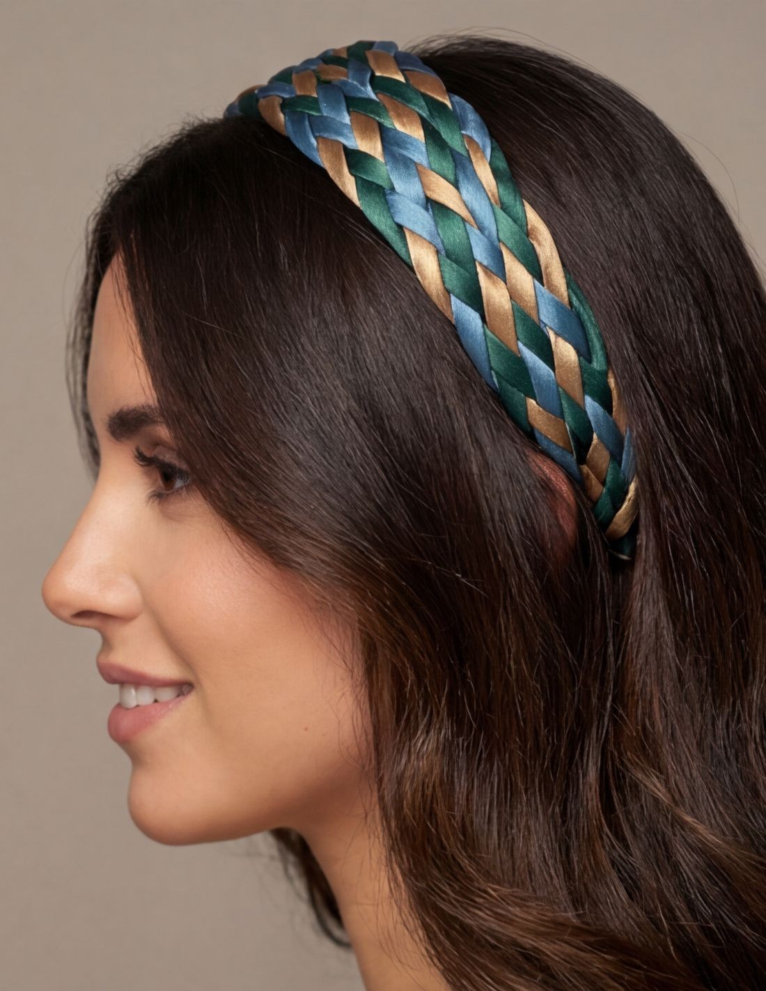 Esta diadema trenzada en raso en tonos azules es un accesorio elegante y fresco que aporta un toque especial a cualquier look. La combinación de distintos azules entrelazados crea un efecto armonioso y sofisticado, perfecto para quienes buscan un complemento con personalidad pero fácil de combinar.