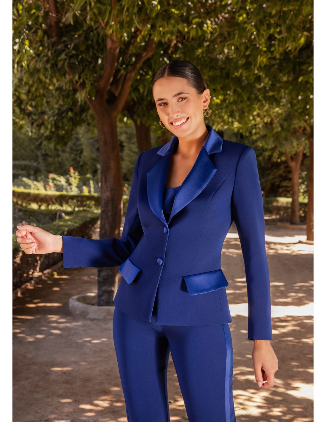 Conjunto de tres piezas con blusa, pantalón y chaqueta para invitada