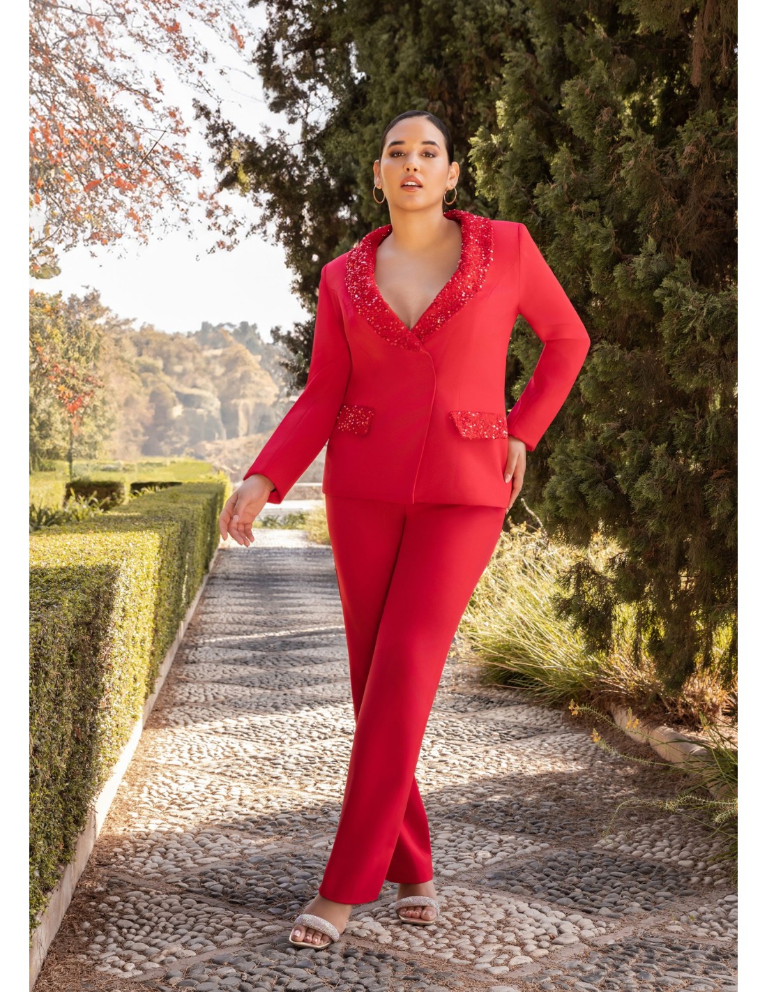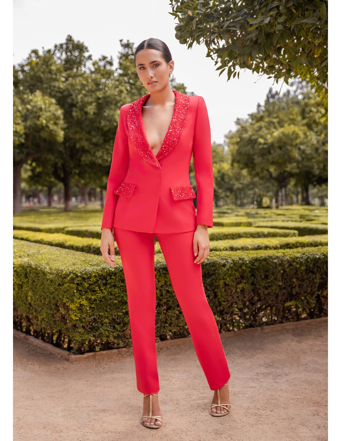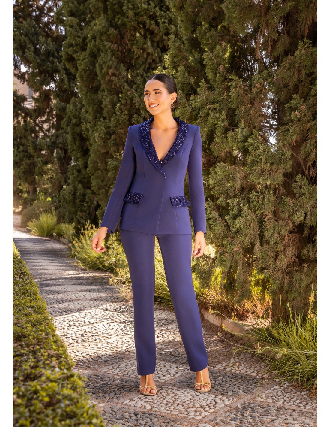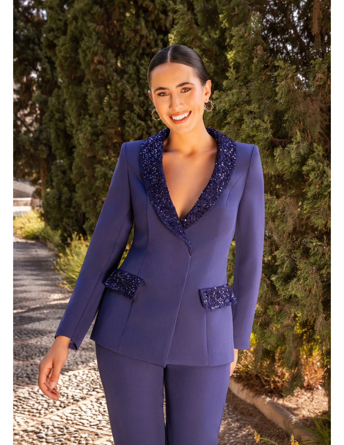 Traje de chaqueta para invitada con detalles de lentejuelas