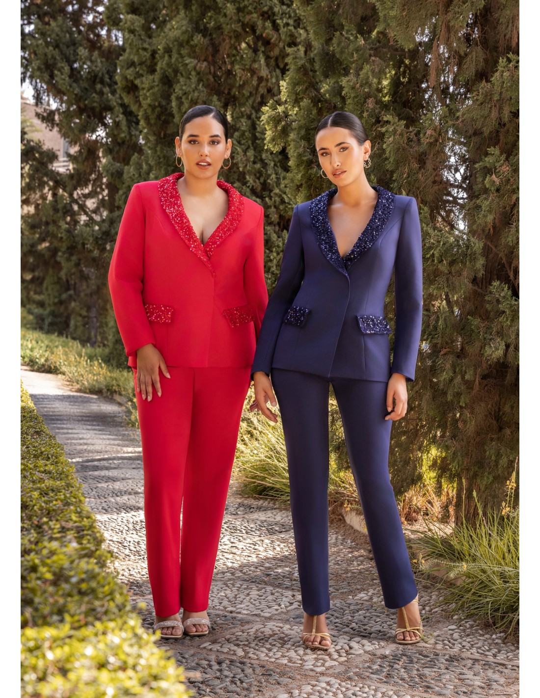 Si quieres ser una invitada original, este traje de chaqueta, ¡no te hará pasar desapercibida! Un diseño ideal que podrás lucir tanto en eventos formales como en otros mas de diario, podrás combinarlo junto o por separado. Además, es un traje perfecto para cualquier ocasión, tanto boda, como comunión, bautizo... ¡No te lo querrás quitar! Compuesto por una chaqueta elegante con solapas y cuello de lentejuelas en el mismo tono y un pantalón hasta el tobillo. ¡Arrasarás con esta elección!