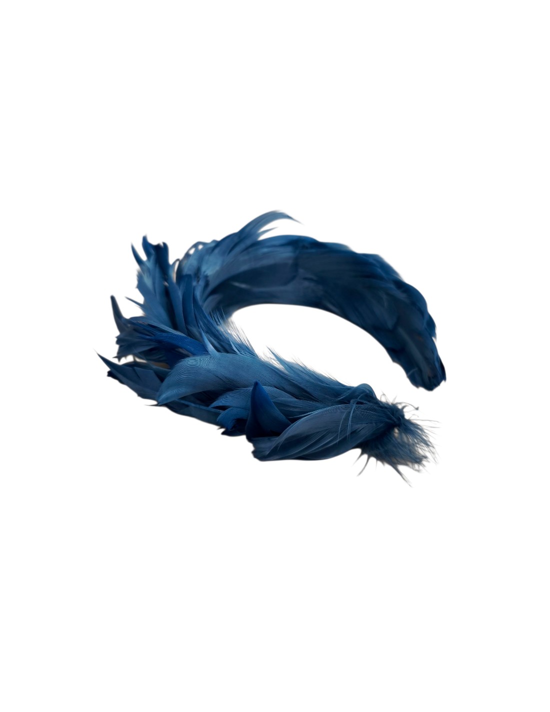 Eleva tu estilismo de invitada con nuestra diadema de invitada de plumas en azul marino. Un accesorio diseñado para quienes buscan el equilibrio perfecto entre la sofisticación clásica y la audacia contemporánea. Esta pieza no es solo un complemento, sino el centro de atención de cualquier look de boda, bautizo o evento de gala.