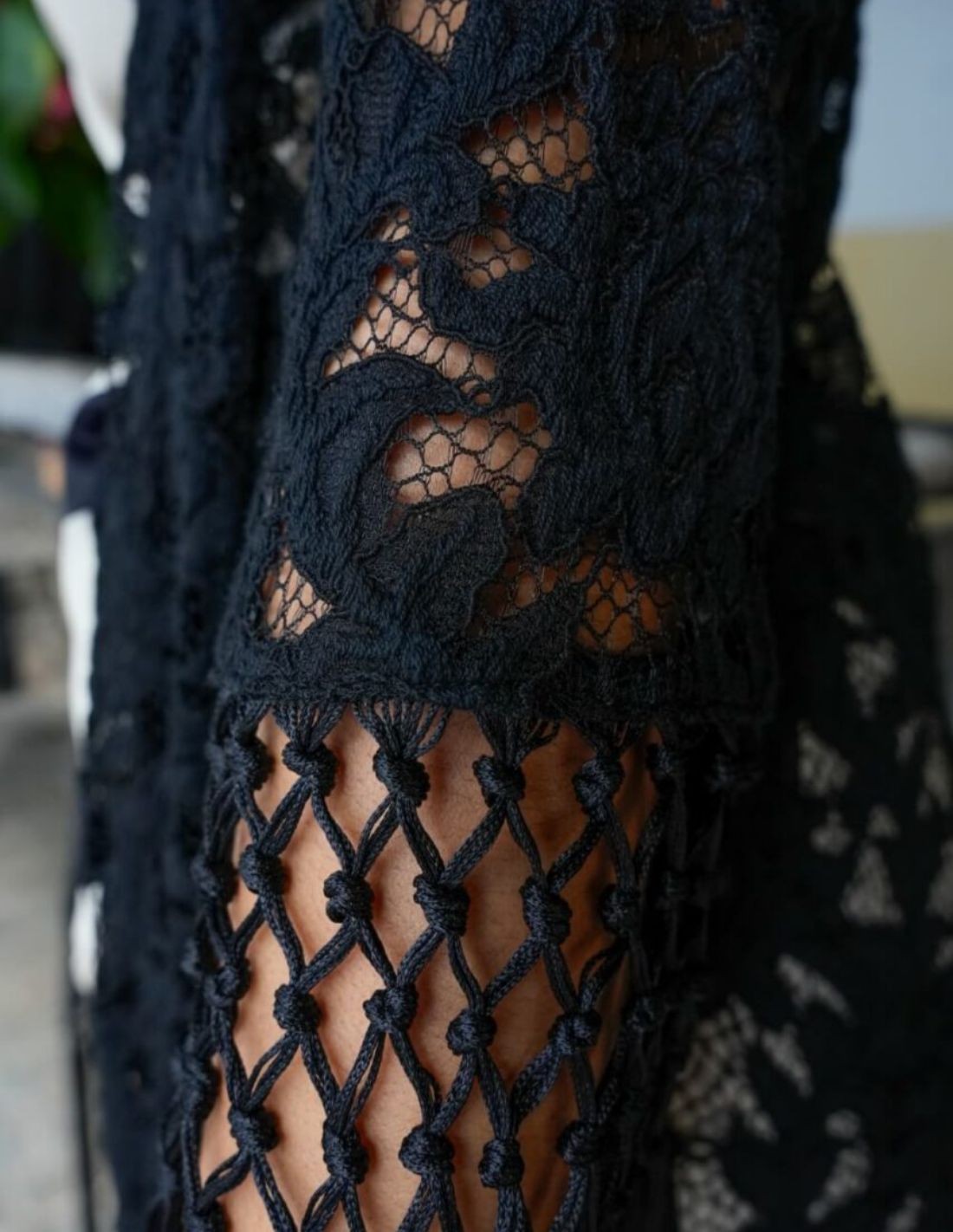Kimono de encaje floral negro, elegante y femenino, ideal como alternativa al mantón de flamenca o para looks de invitada.