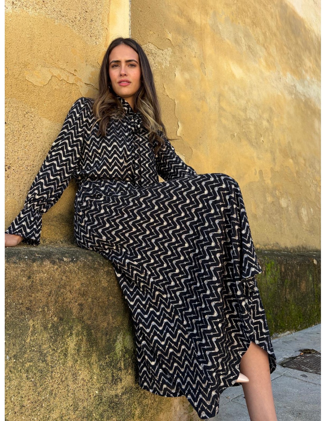 El estampado zigzag aporta dinamismo visual y un aire sofisticado que eleva cualquier conjunto, convirtiendo esta falda en una prenda ideal para quienes buscan un diseño distintivo con personalidad. Su corte evasé es uno de los elementos más favorecedores: alarga la silueta, aporta movimiento y crea un efecto estilizador sin marcar, lo que la hace apta para todo tipo de cuerpos.