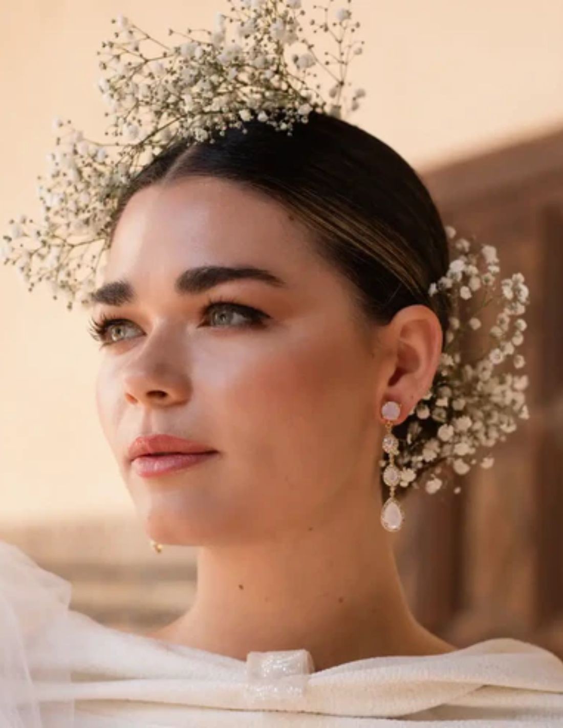 Unos pendientes diseñados para hacer brillar a cualquier novia o invitada en una ocasión muy especial como lo es una boda. Compuestos por tres lágrimas de piedras facetadas y enmarcadas por un pequeño hilo de pequeñas circonitas que caen de manera ligera y elegante alargando el cuello y enmarcando el rostro. Una opción ideal para esas novias que buscan un complemento elegante y sutil.