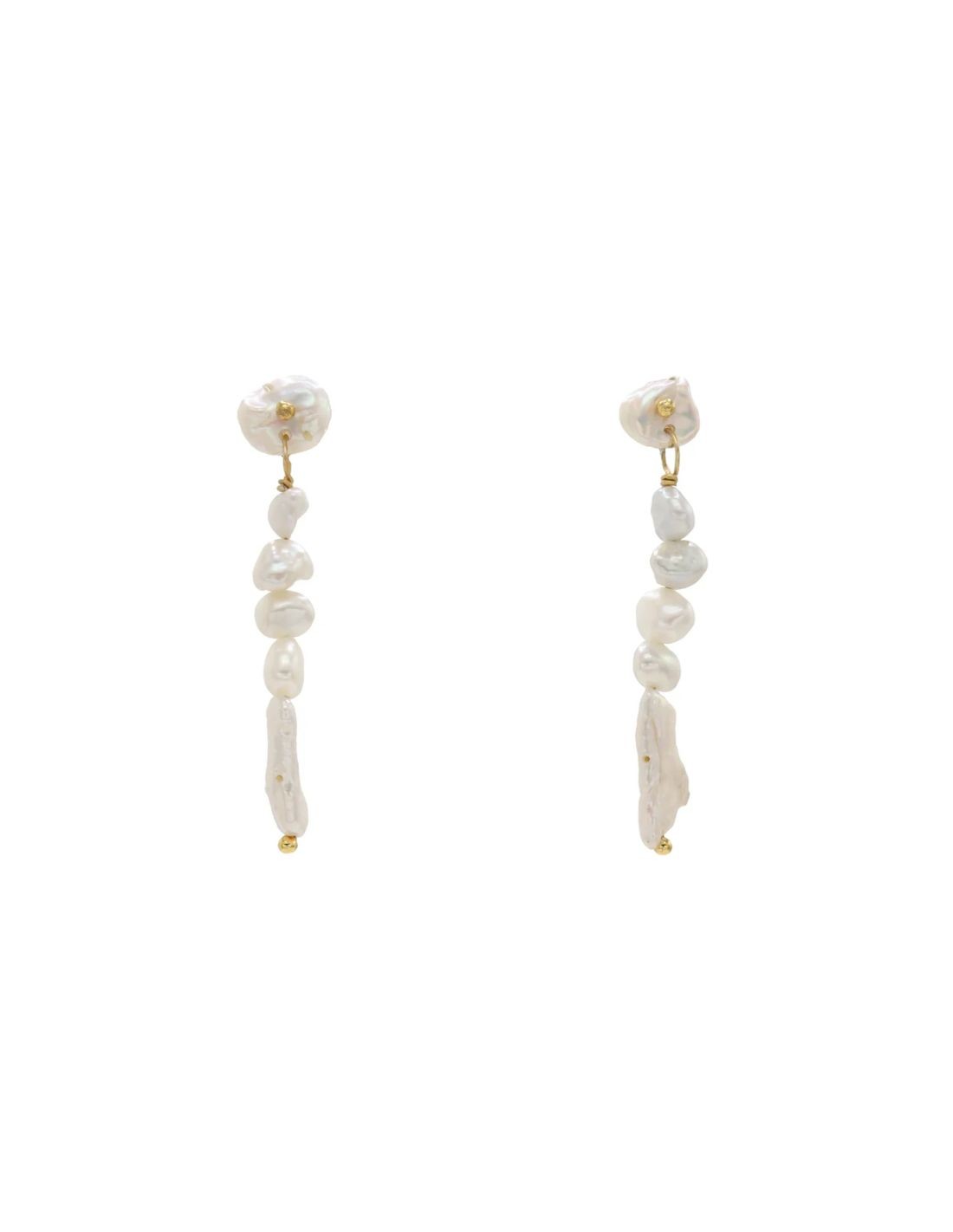 Añade un toque de elegancia natural a tu look con nuestros pendientes largos de latón bañado en oro y perlas irregulares. Su diseño combina la sofisticación del dorado con una hilera de perlas cada una con formas irregulares. Perfectos para invitadas, novias o para quienes buscan un complemento especial. Estos pendientes se convertirán en el detalle ideal para tus ocasiones más especiales.