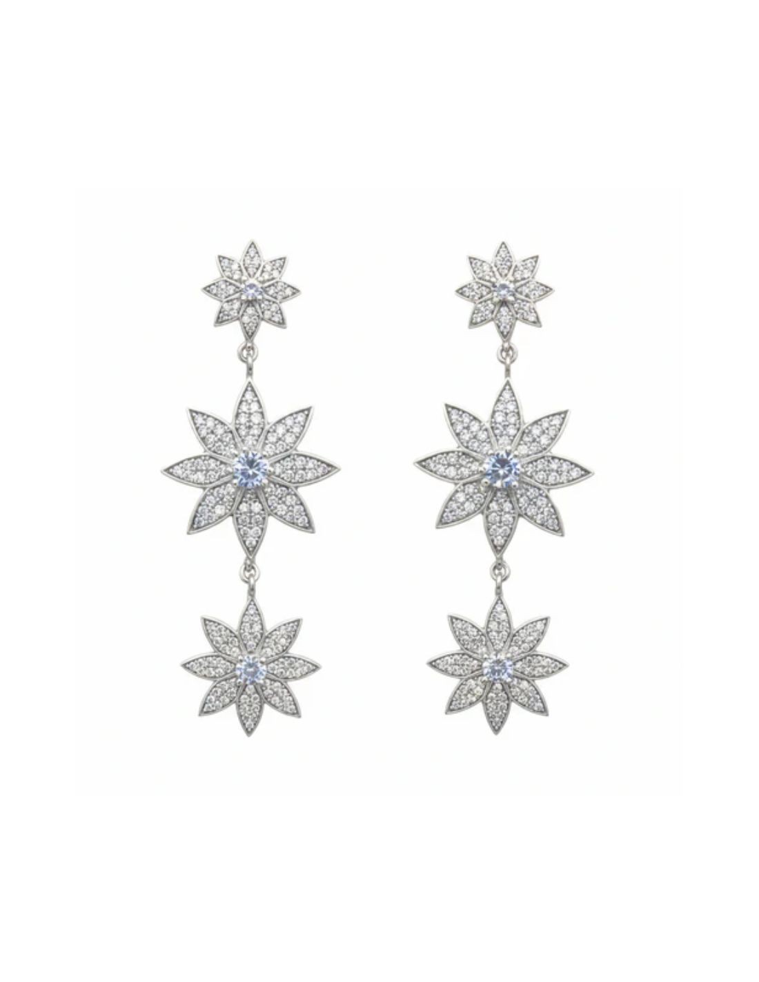 Estos pendientes largos combinan el brillo de las circonitas con el encanto de delicadas estrellas doradas. Elaborados en latón bañado en oro, ofrecen un acabado luminoso y duradero que resalta su diseño elegante y femenino. Las circonitas aportan destellos sutiles de luz al rostro y su diseño alargado estiliza el rostro y añade un toque de sofisticación a cualquier look, ya sea para una ocasión especial o para elevar un conjunto diario.