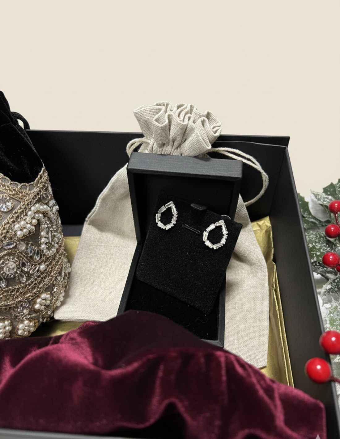 Triunfa estas navidades con esta caja de regalo que incluye un kimono de terciopelo ideal para complementar looks invernales con un toque de estilo, una bombonera de terciopelo, perfecta para llevar lo esencial en eventos o celebraciones y unos pendientes sencillos y versátiles, adecuados para dar un toque final. Perfecta para las que apuestan por los complementos para elevar cualquier look.