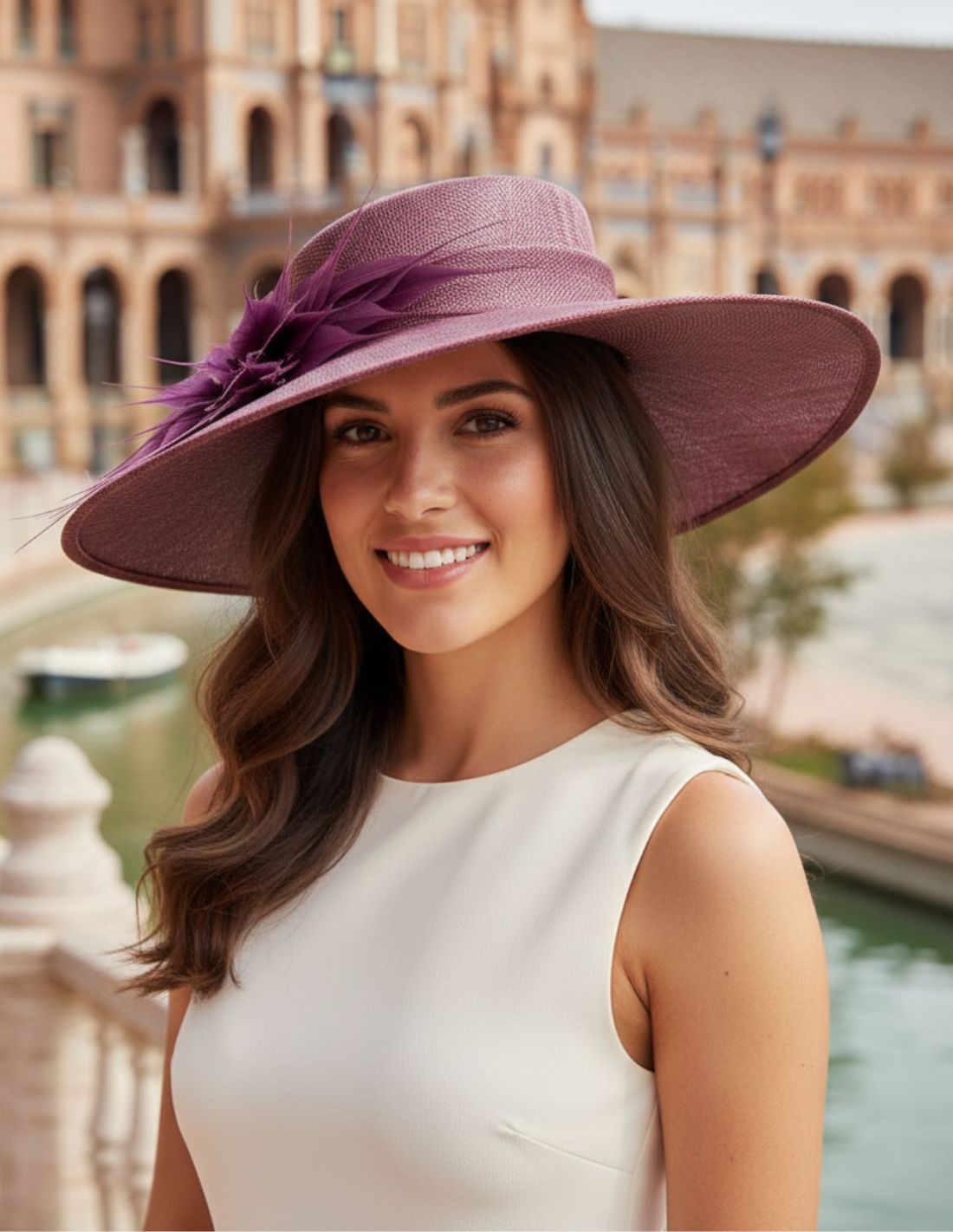 Eleva tu look de invitada a su máximo nivel con nuestra pamela de invitada clásica en color malva. Esta pieza destaca por su montaje de plumas dispuesto de forma artesanal, creando un diseño que equilibra a la perfección el volumen sutil con una silueta refinada. Es el accesorio definitivo para las invitadas que buscan un toque romántico y sofisticado, ideal para bodas de día y eventos de etiqueta donde el estilo es la prioridad.