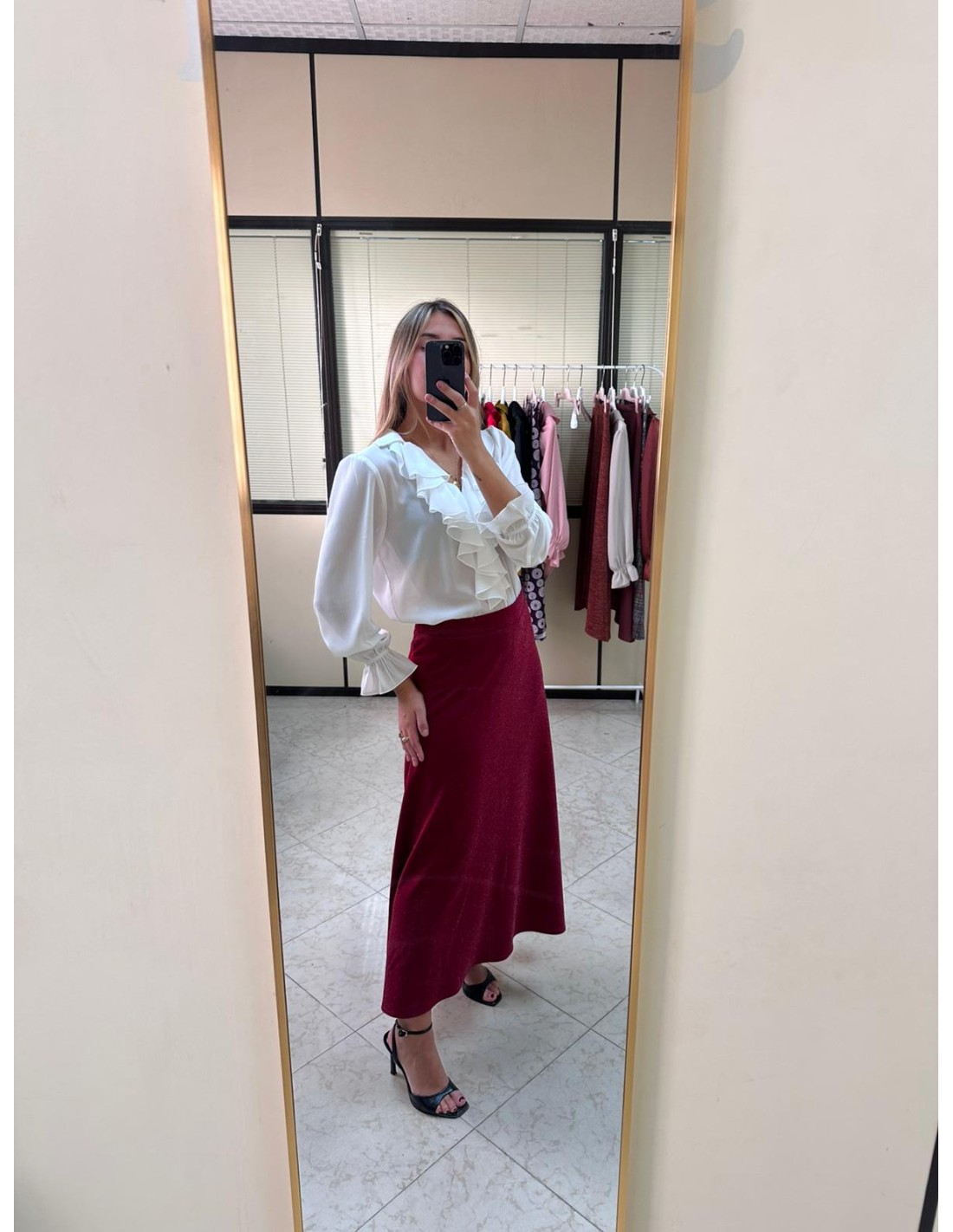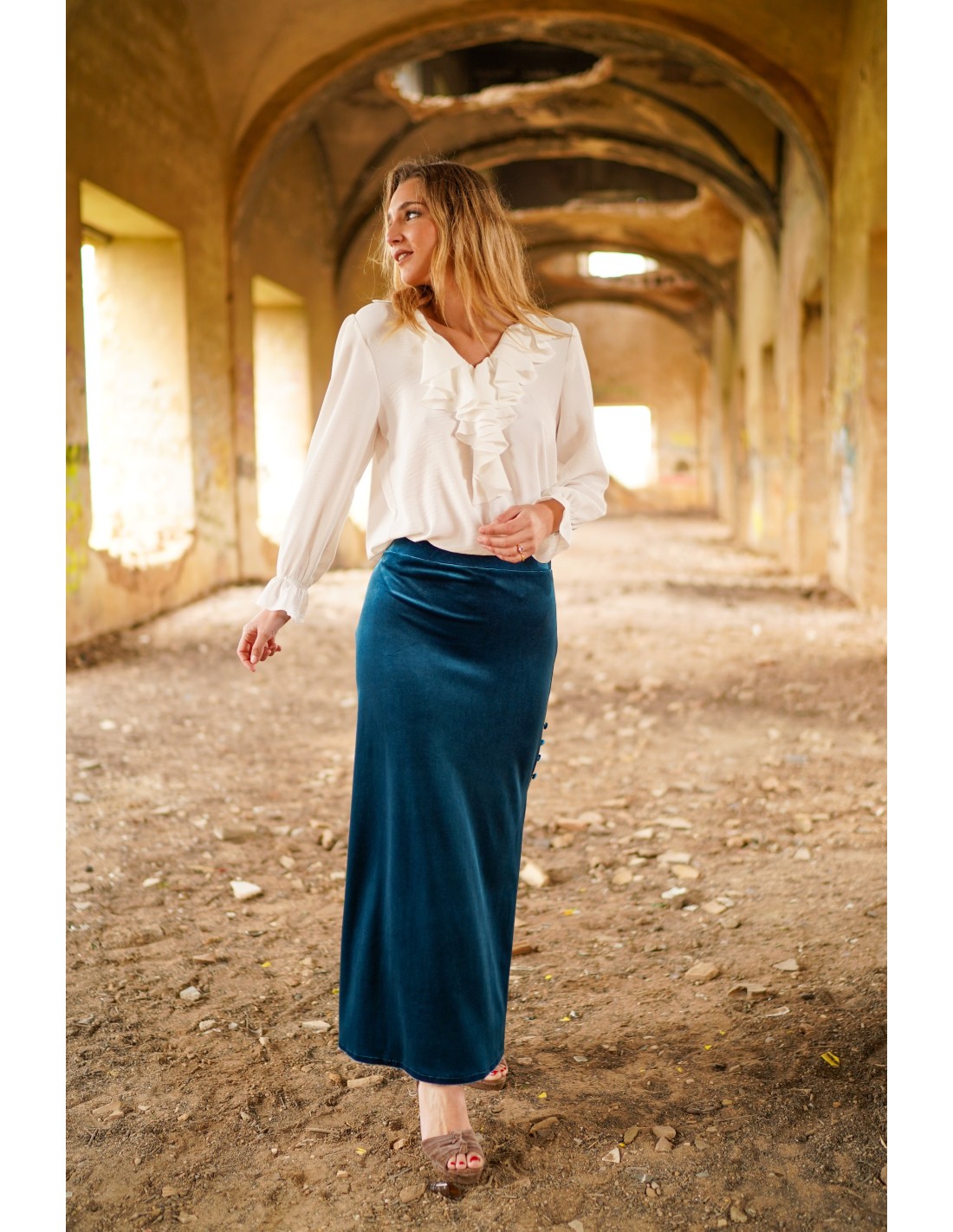 Blusa cruda con volantes y manga larga para ocasiones especiales