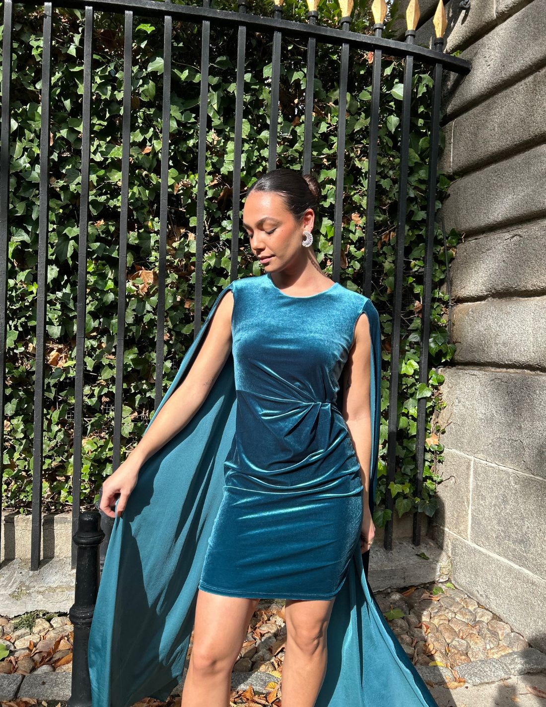 Este vestido corto de fiesta de terciopelo con manga capa para invitada. Un diseño muy especial para tus eventos de otoño-invierno en diferentes colores: granate, azul, y negro. Un vestido ideal para las ocasiones de Navidad, fiestas, cenas con amigas, Nochebuena... Incorpora unas mangas capa y un fruncido en la parte delantera, que lo hacen un diseño único y muy favorecedor.