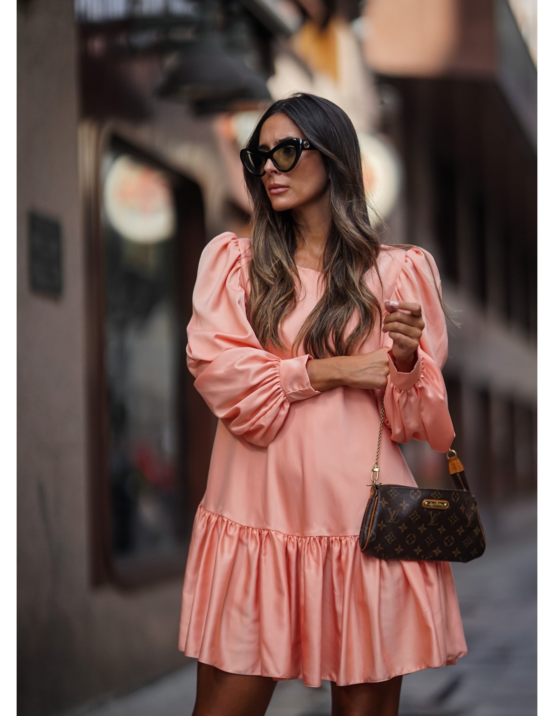 Vestido corto salmón con manga larga