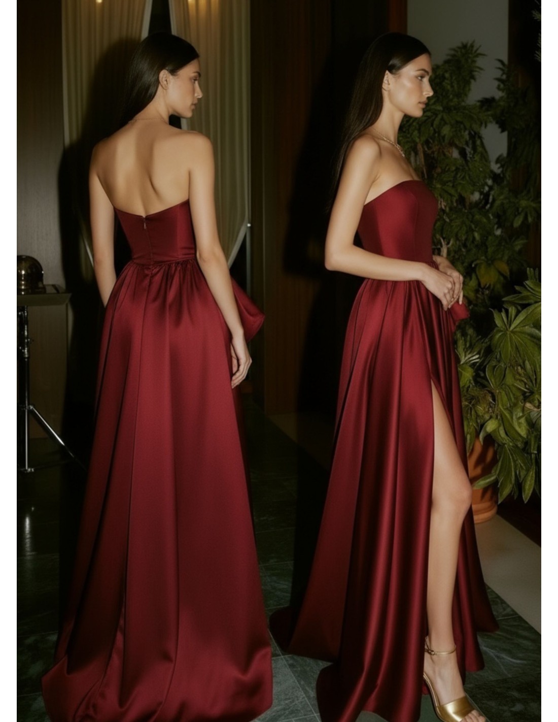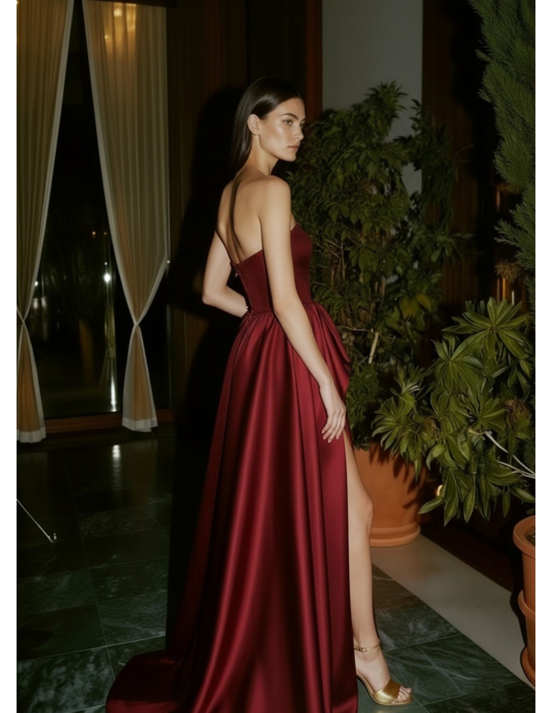 Si tienes un evento especial de tarde, eres dama de honor o hermana de la novia/o este vestido largo de invitada te hará brillar. Se trata de un diseño estructurado con escote palabra de honor y abertura lateral, que permite su total comodidad y el movimiento. Su color lo hace un diseño sofisticado y perfecto para poder combinar con múltiples complementos. Atemporal e ideal si quieres ser la mejor invitada del evento.