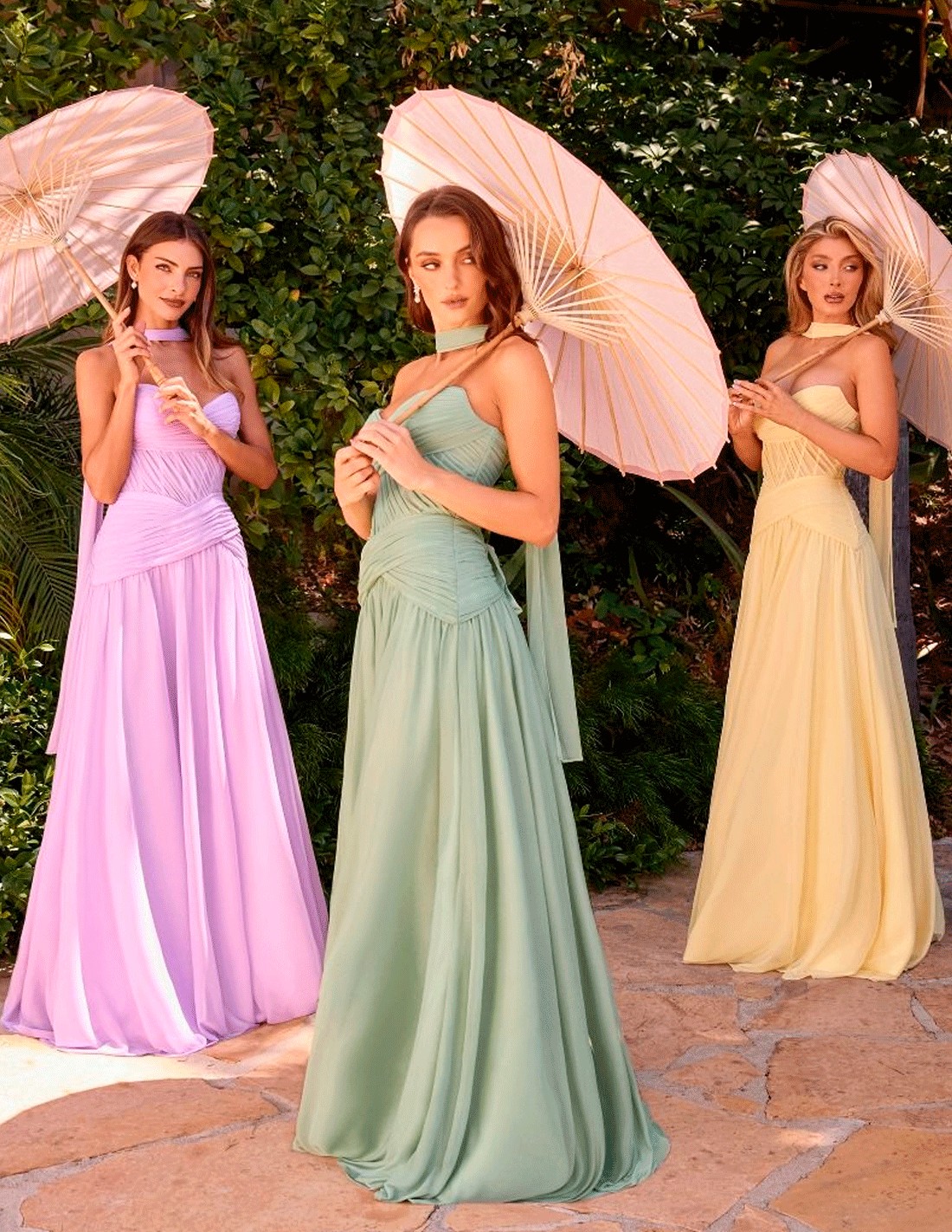 Vestido largo palabra de honor con escote corazón y falda fluida