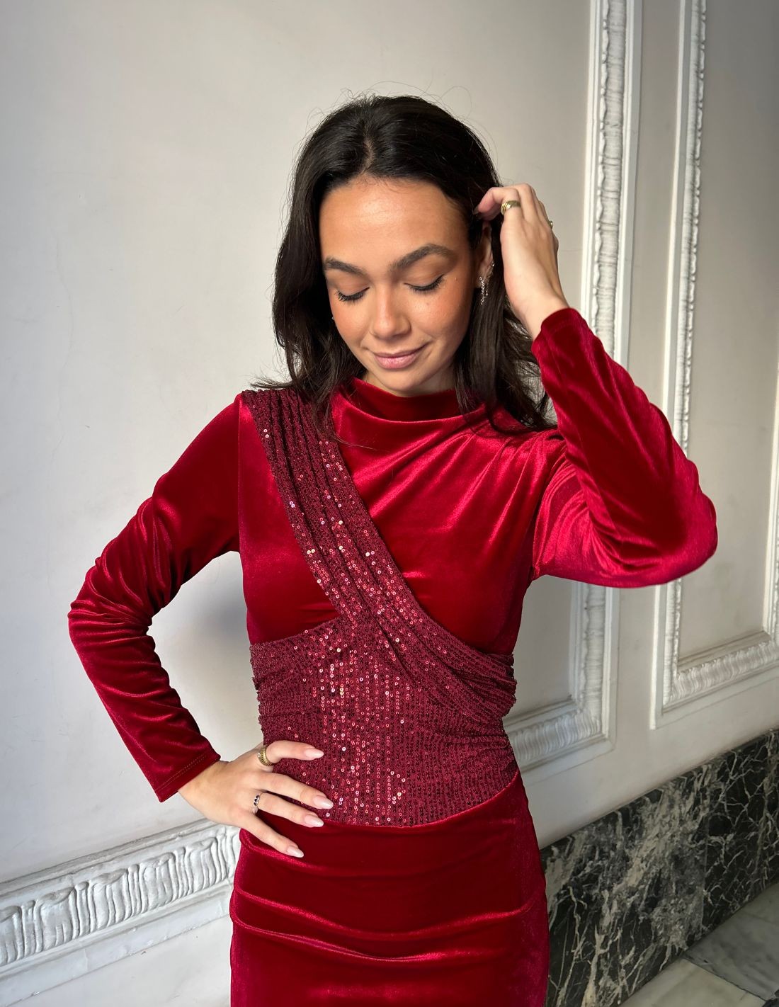 Vestido midi de fiesta en terciopelo y lentejuelas