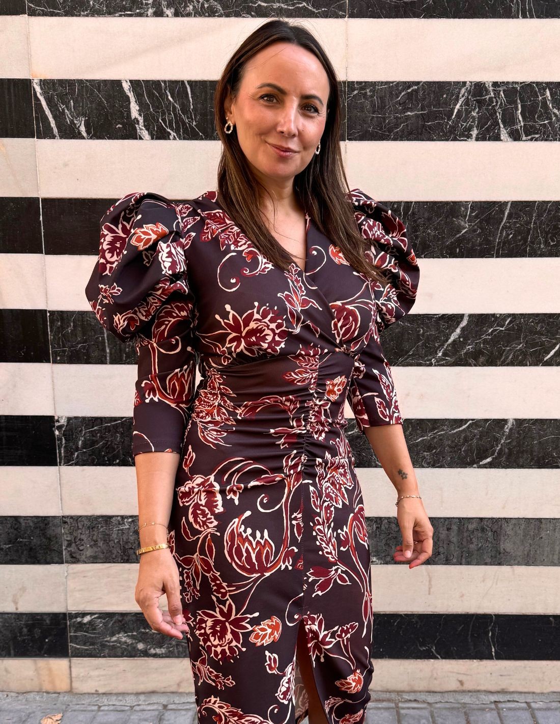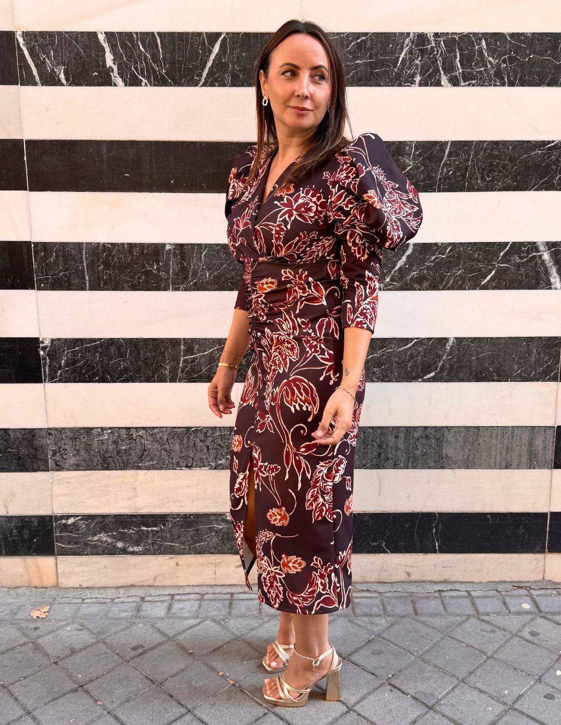 Este vestido midi estampado en tonos marrones es la elección perfecta para invitadas que buscan un look elegante, femenino y con un toque de estilo natural. Su diseño fluido y su estampado en tonalidades tierra evocan la calidez del otoño, aportando equilibrio y sofisticación a cualquier evento. Con un corte midi favorecedor y un tejido ligero con movimiento, este vestido realza la figura con sutileza, ofreciendo comodidad sin renunciar a la elegancia. Ideal para bodas de día, eventos al aire libre o celebraciones especiales, combina a la perfección con complementos dorados, beige o en tonos chocolate.