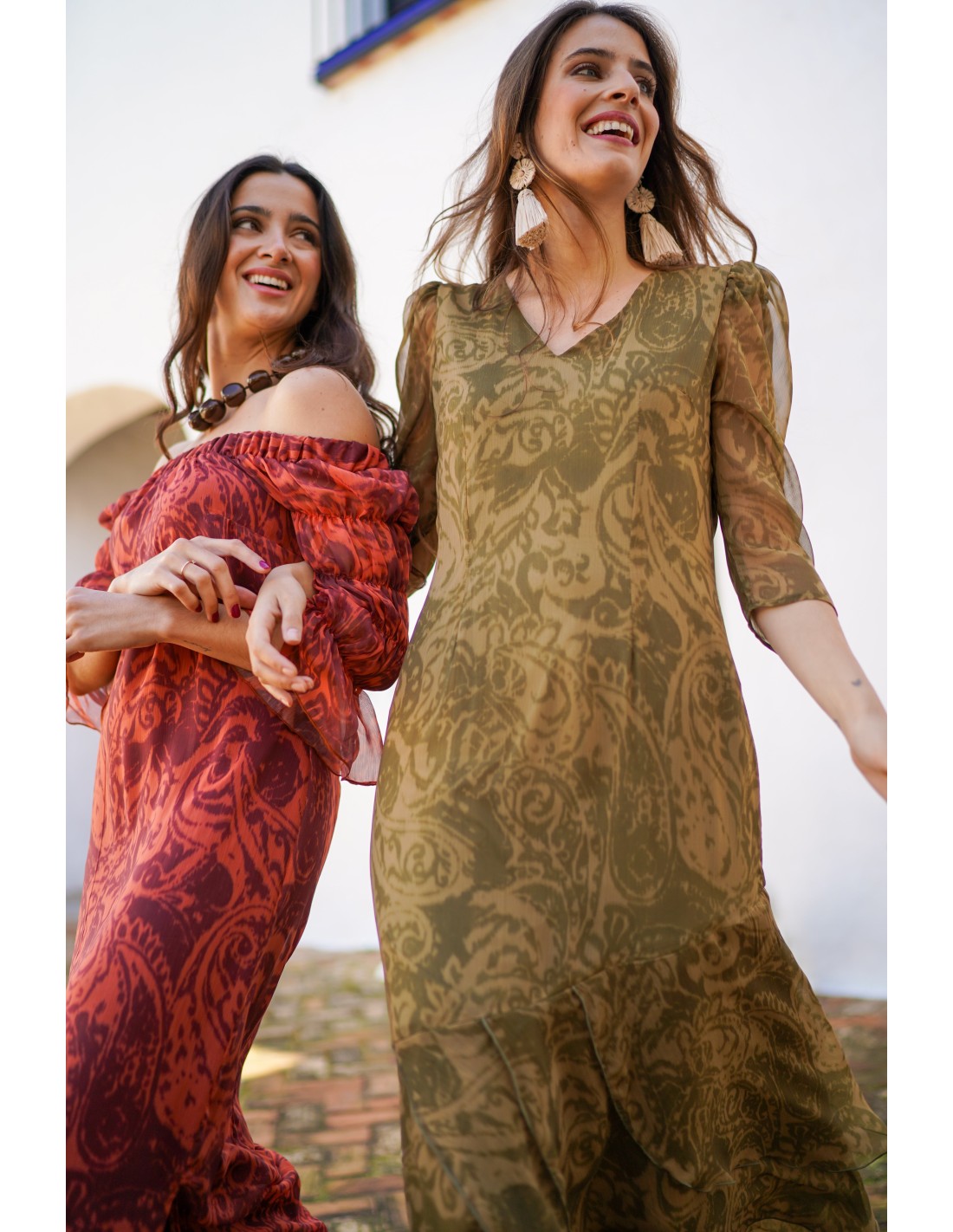 Este vestido midi verde oliva con estampado integral de estilo barroco es una prenda sofisticada y versátil para quienes buscan elegancia y comodidad en un solo diseño. Confeccionado en un tejido ligero y semitransparente de acabado suave, ofrece una sensación agradable al contacto con la piel, perfecta para llevar durante todo el día o en eventos especiales.