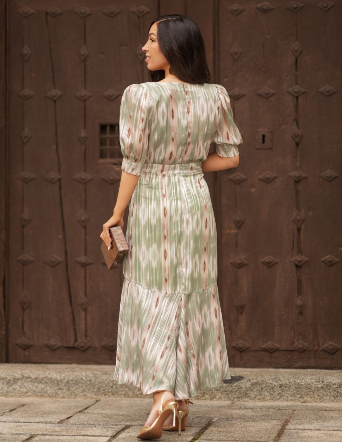 Tus eventos de primavera merecen un lookazo a la altura y este vestido midi, ¡será tu aliado! Confeccionado con mucha caida y tejido fluido en estampado en colores pastel, tan en tendencia este 2026. Incorpora escote cruzado en pico con abotonado favorecedor y cómodo, además de mangas abullonadas. Perfecto para mama de comunión, bautizo, eventos de día... ¡serás una invitada perfecta!