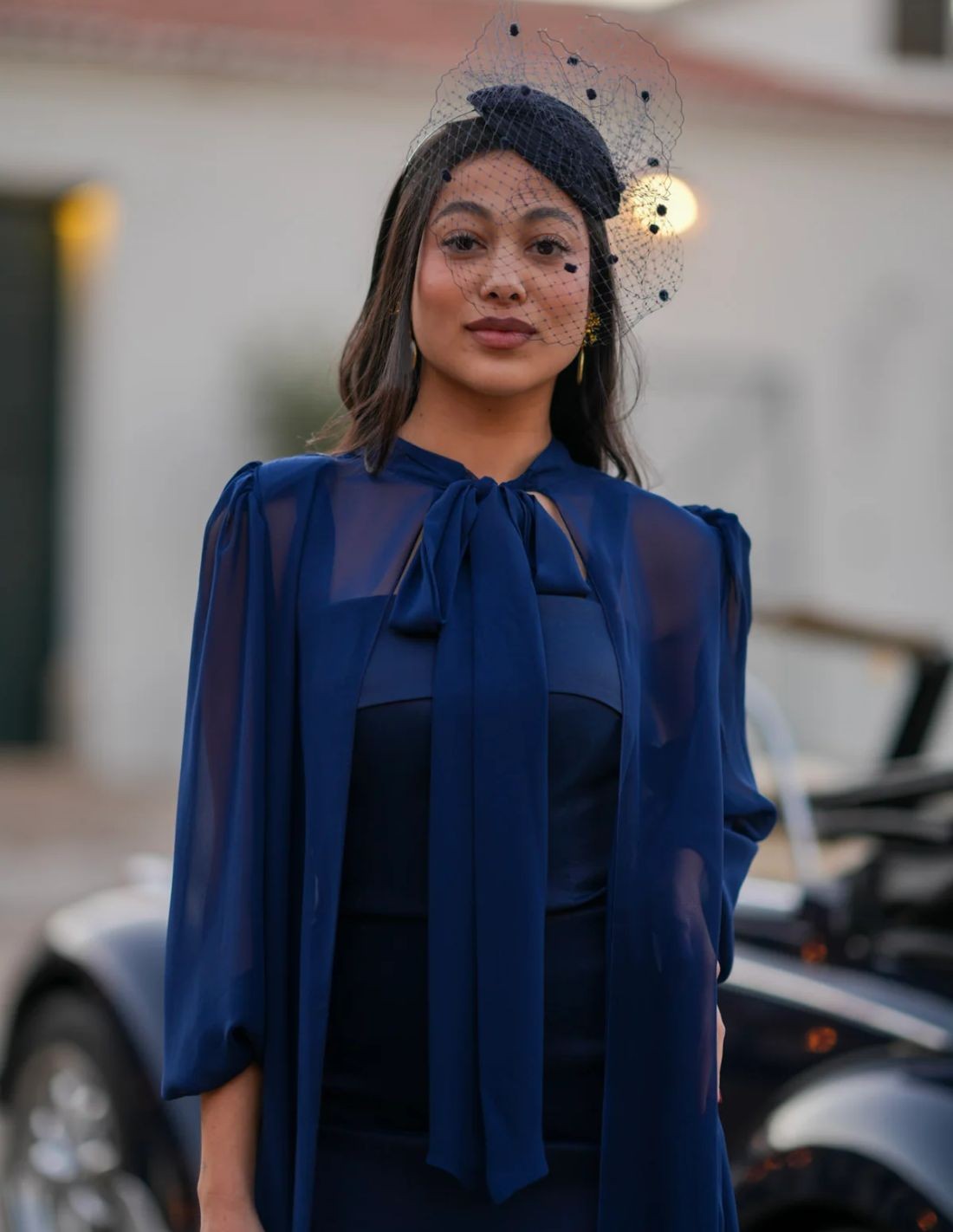 Este vestido midi te salvará cualquier evento esta temporada. Confeccionado en tafetán, un tejido cómodo que se adapta perfectamente, con tirantes y con un corte recto. Incluye además, una capa de gasa con mangas y hombreras que le dan ese toque elegante al diseño. Perfecto para los eventos de primavera como boda o fiesta especial. Su color marino, hace que sea un diseño elegante y sofisticado.
